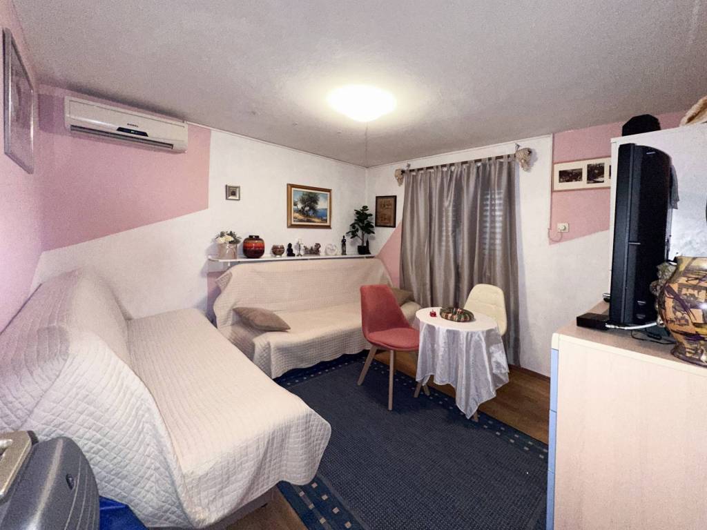 U predivnom kvartu Uskok na prodaju je stan u prizemlju površine 35m2 stan se sastoji od vanjske natkrivene terase koja se koristi kao vanjska kuhinja i mjesto za uživanje, kuhinje s blagovaonicom, dnevni boravak, wc te jedna spavaća soba, stanu pripada i vrt te dva parkirna mjesta. Grijanje se odvija preko klima uređaja. Stan se nalazi na odličnoj lokaciji, u mirnom kvartu, udaljeno svega 70metara od mora i predivne plaže Uskok, te su u blizini svi potrebni sadržaji poput dućana, restorana, kafića, ljekarni itd...