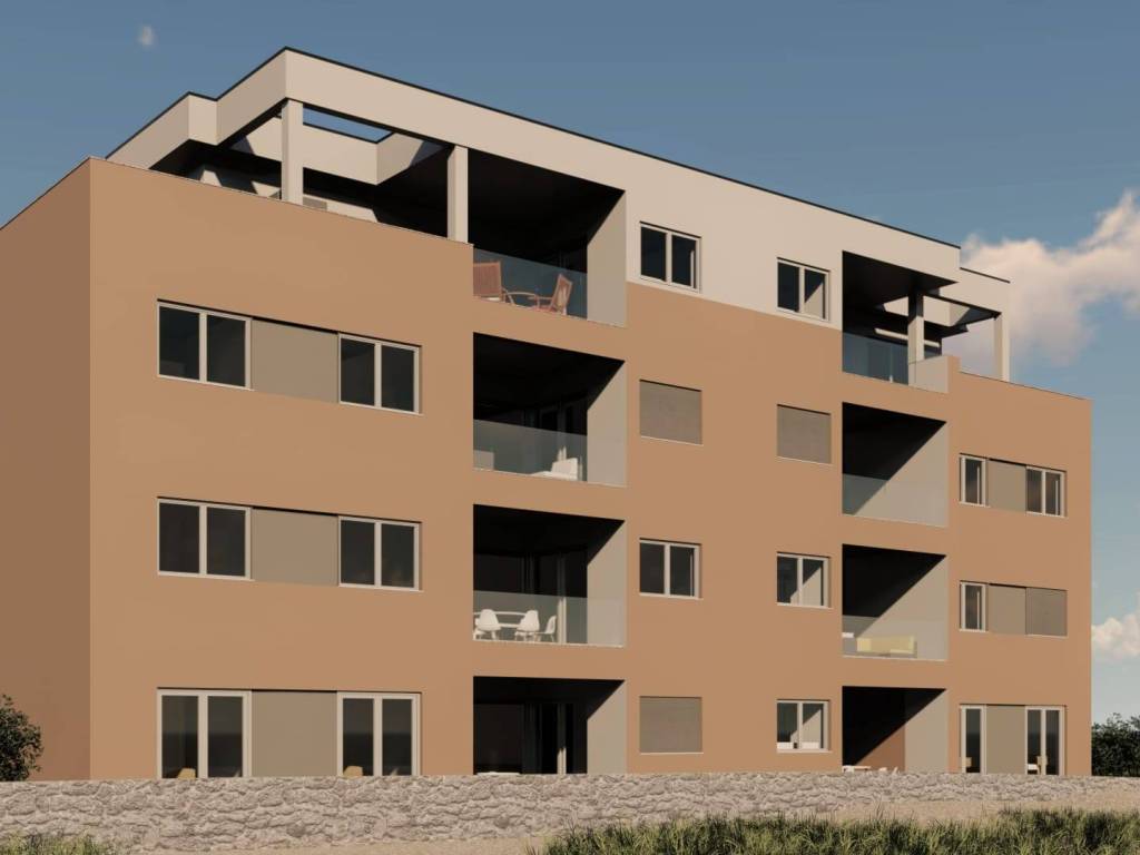 Zgrada se nalazi na oko 200 metara od mora, što omogućava lijep pogled na more. Budući stanari će moći uživati u mirnoj i blago povišenoj lokaciji.