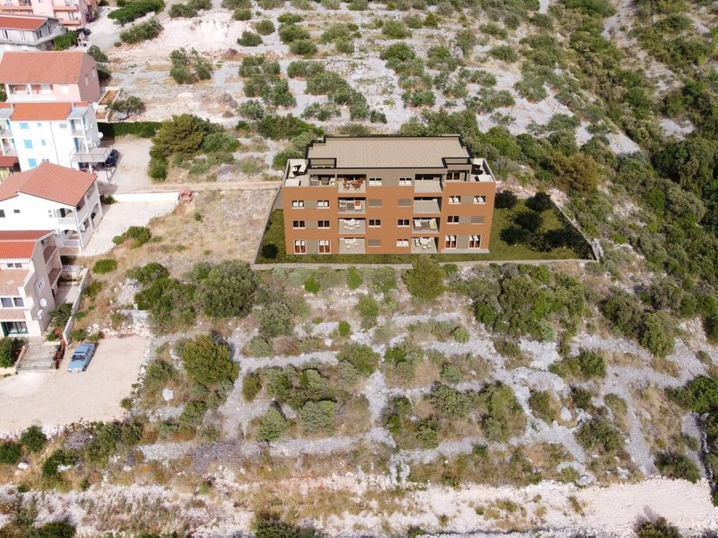 Zgrada se nalazi na oko 200 metara od mora, što omogućava lijep pogled na more. Budući stanari će moći uživati u mirnoj i blago povišenoj lokaciji.