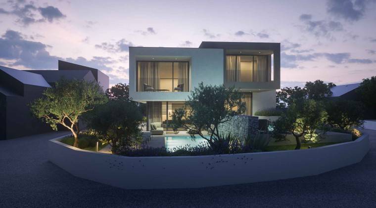 Prizemlje je koncipirano na način da je cijeli prostor osmišljen na način open space kuhinje s blagovaonicom te dnevnog boravka, s izlazom na terasu gdje se nalazi bazen. Unutarnje stepenište vodi na prvu etažu gdje se nalaze tri spavaće sobe, svakak s vlastitom kupaonicom, te natkrivenim terasama.