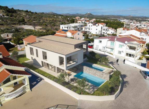 Stavlja se na prodaju iznimna duplex stambena zgrada sa dvije pripadajuće jedinice na izvrsnoj lokaciji u Vodicama, u blizini svih bitnih objekata i sadržaja, s panoramskim pogledom na cijele Vodice, more i otočni arhipelag.