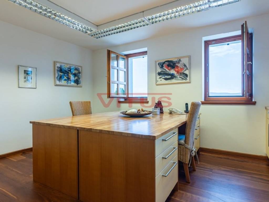 Luksuzna kamena vila, smještena na imanju površine 25 909 m2, uređena u autohtonom primorskom stilu, ukrašena je modernim detaljima i opremljena vrhunskom tehnologijom. Vila i dva pomoćna smještajna objekta, ukupne su stambene površine 637 m2. Nalazi se u blizini grada Krka, u mirnom području okužena maslinikom.