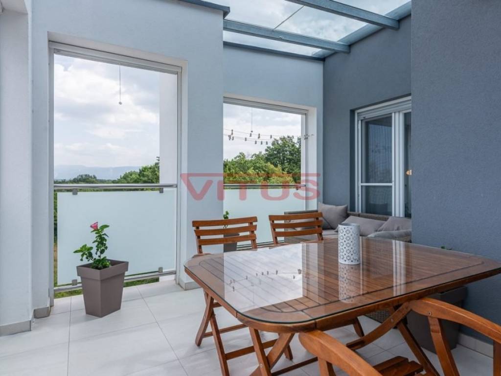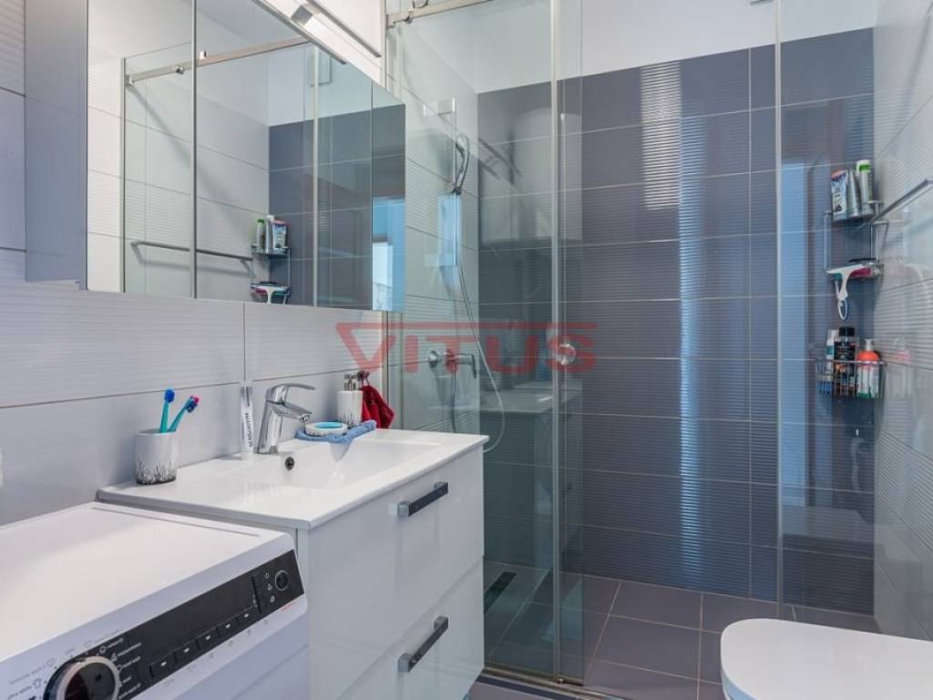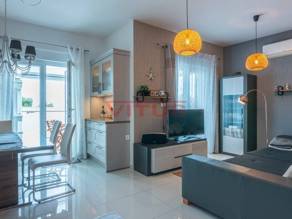 Samo u našoj ponudi! Moderni trosobni apartman s pogledom na more, ukupne stambene površine 95,08 m2, nalazi se na drugom katu apartmanske zgrade u Njivicama. Sastoji se od predulaza s hodnikom, dnevnog boravka s kuhinjom, tri spavaće sobe, dvije kupaonice i ostave. Dnevni boravak ima pristup terasi s lijepim pogledom na more. Na terasi se nalazi roštilj. U stanu je postavljeno podno grijanje, prodaje se namješten. Na uređenoj okućnici se nalazi parking za dva vozila. Na odličnoj lokaciji, udaljen od mora samo 300 m!