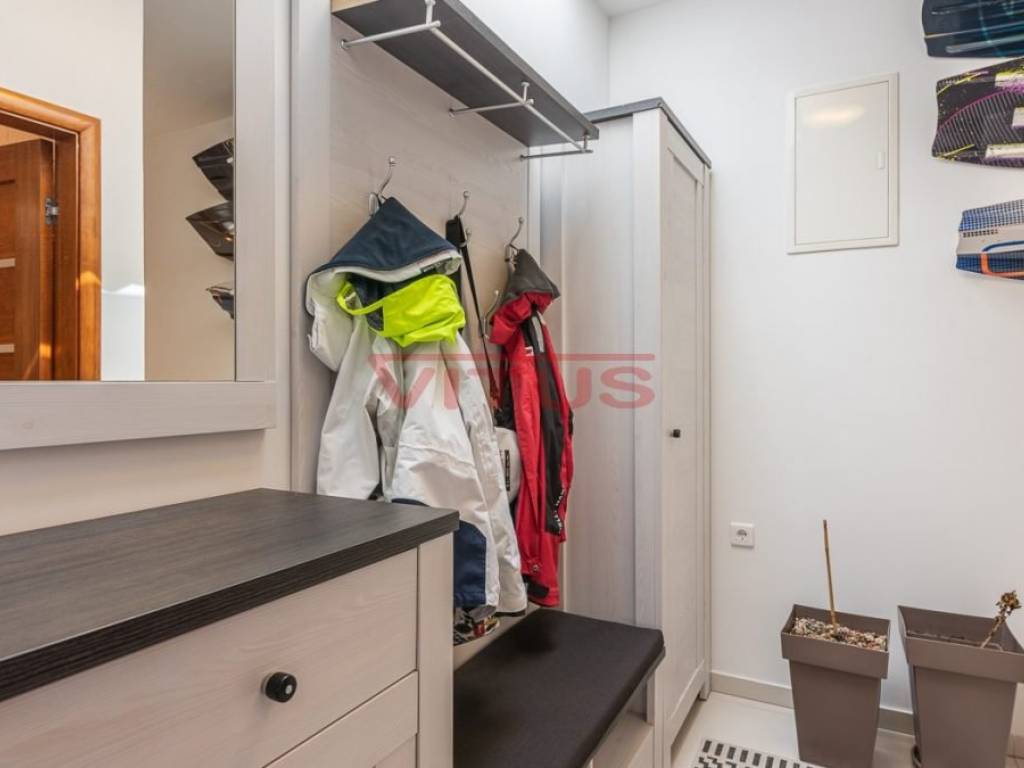 Asfaltiran prilaz, Blizina mora, Etažirano, Građevinska dozvola, Gradska kanalizacija, Gradski vodovod, Klimatizacija, Namješteno, Pogled na more, Samostojeći objekt, Telefon, U idealnim djelovima, Uređena okućnica, Više parkirnih mjesta, Vlasnički list.