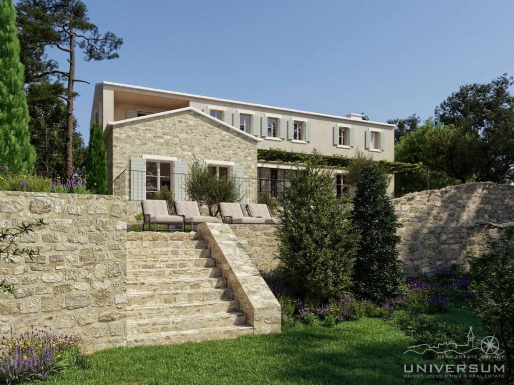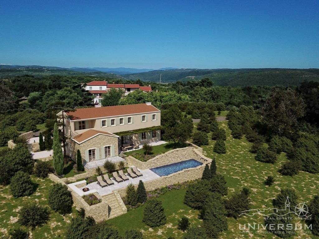 Prodaje se predivna vila okruženu zelenilom i pogledom na more u okolici Novigrada. Površina vile je 270 m2 dok je površina zemljišta 1010 m2. Proteže se na dvije etaže. U prizemlju se nalaze ulazni hodnik, vešeraj, wc, wellness, spavaća soba sa kupatilom, kuhinja s blagovaonom te veliki dnevni boravak iz koje se izlazi na terasu sa koje se prostire prekrasan pogled na more i prirodu. Na katu se nalaze tri spavaće sobe svaka sa svojim kupatilom.
