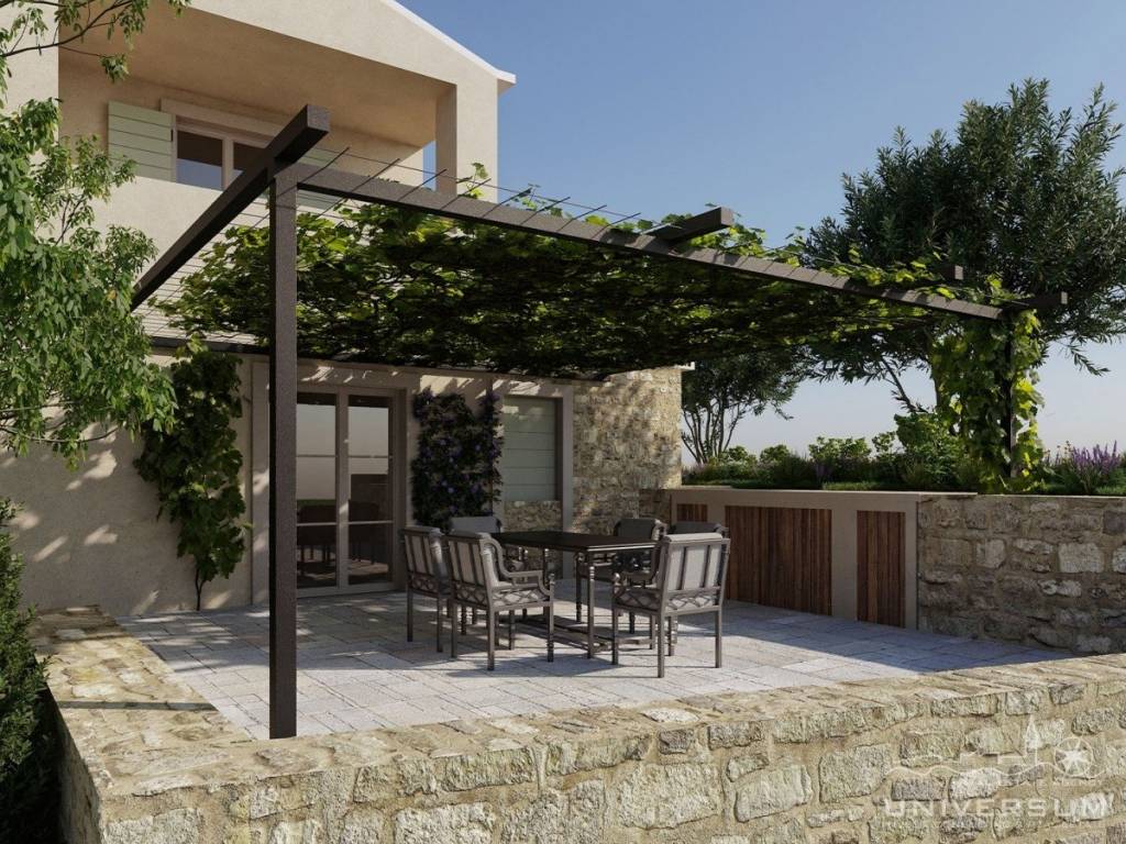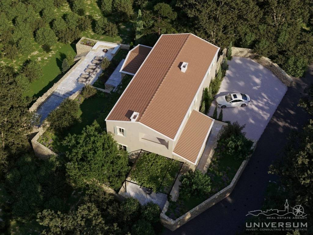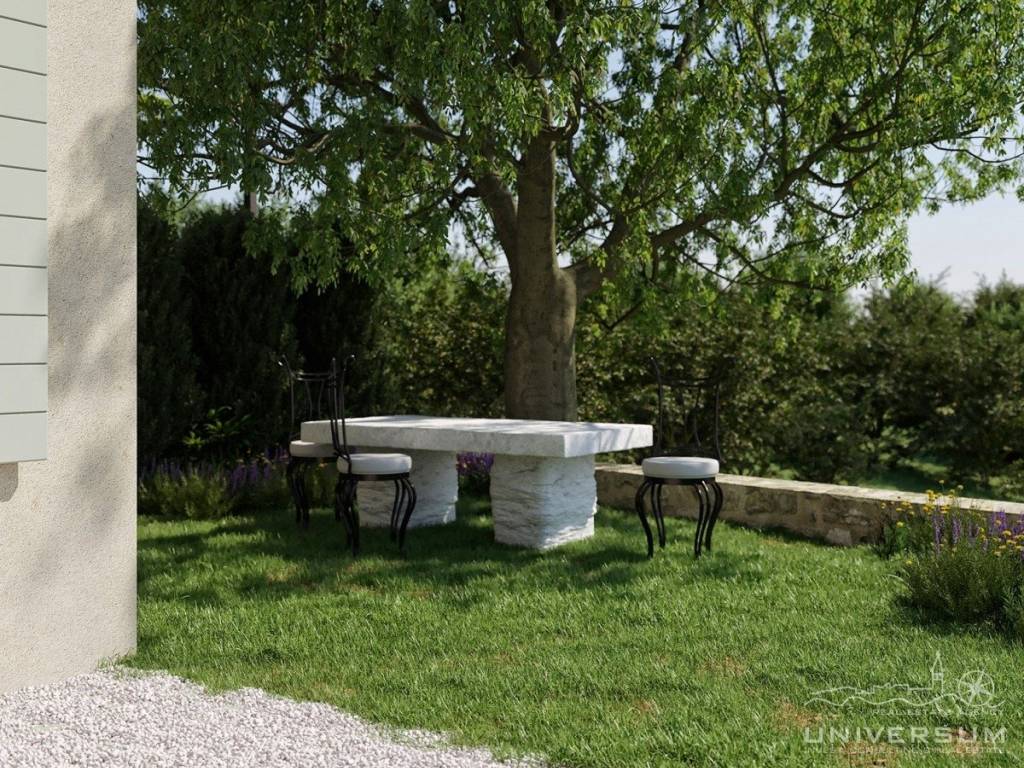 Na okućnici su smješteni bazen i predispozicija za ljetnu kuhinju. Vila raspolaže sa 3 parkirna mjesta.