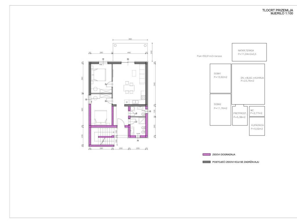 Kuća je sagrađena na parceli od 369m2 i ima izgradivosti od 30%, što budućim vlasnicima daje mogućnost proširenja kuće ili izgradnje bazena.