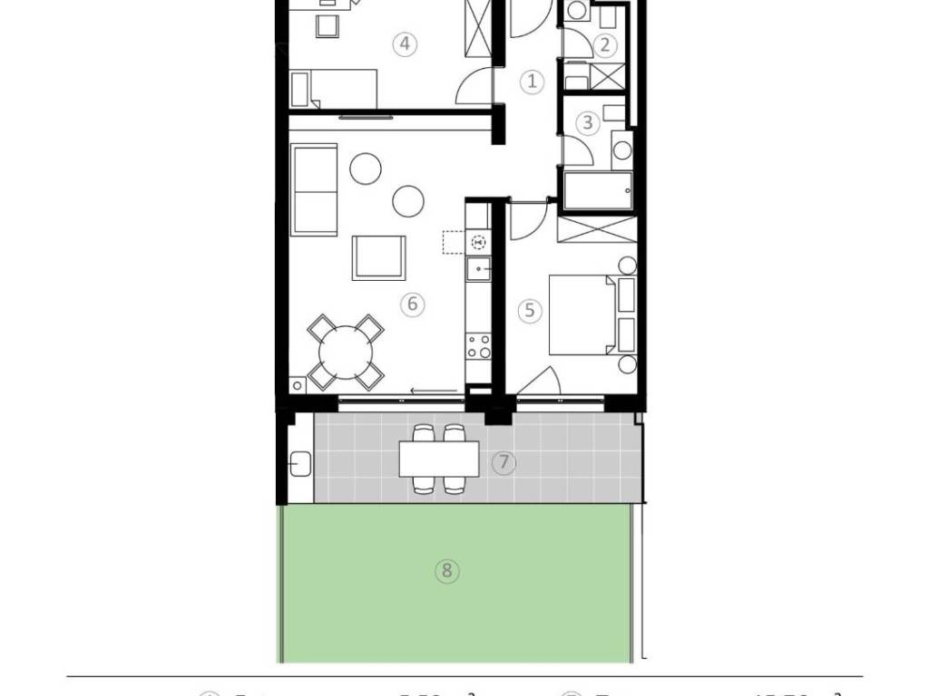 Raspolaže s neto korisnom površinom od 66.90m2, uz dodatnu terasu veličine 15.76m2.