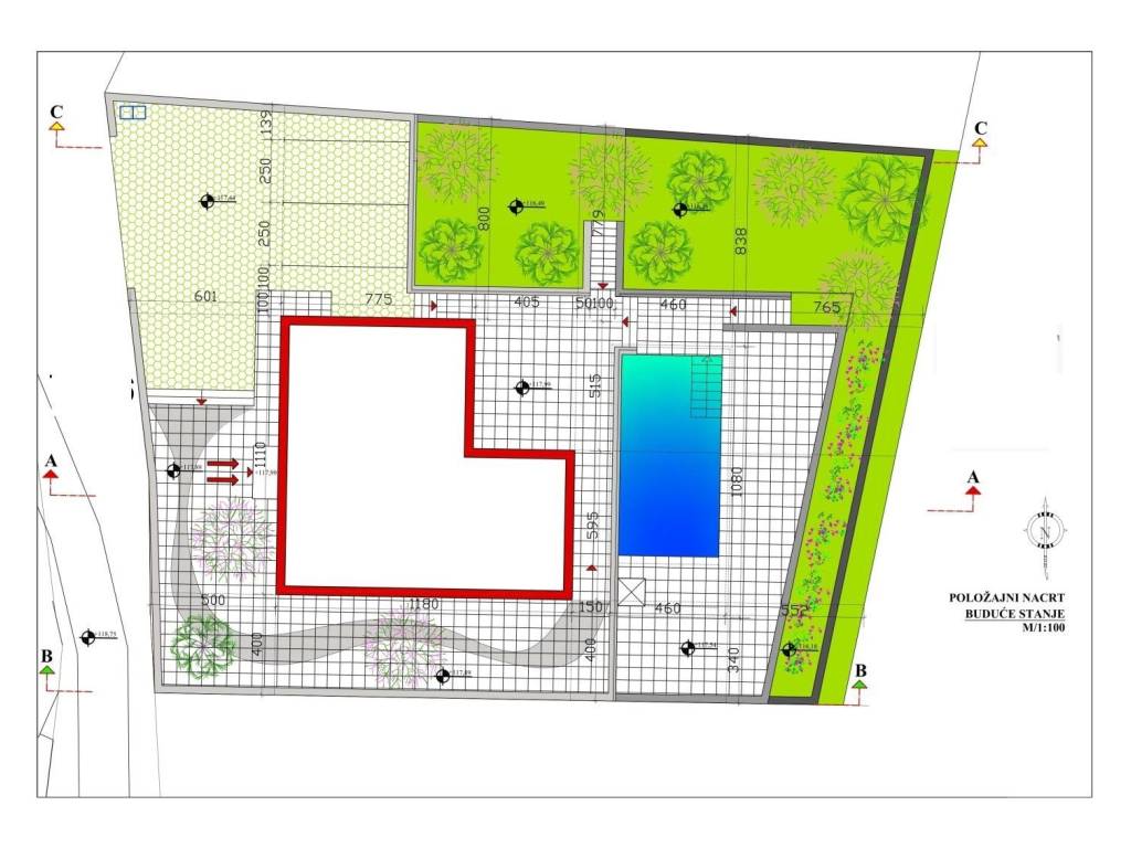 Za ovo zemljište postoji već izrađen projekt za izgradnju kuće s bazenom ukupne površine 173 m2, a podnesen je i zahtjev za građevinsku dozvolu.