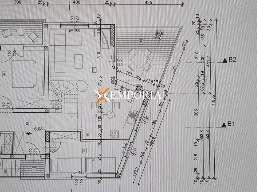 Apartman 129,79 m2 s krovnom terasom i pogledom na more, Vinjerac