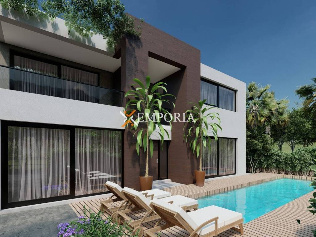 Prodaje se nova moderna kuća s bazenom u Privlaci. Iz kuće se pruža prekrasan pogled na more.