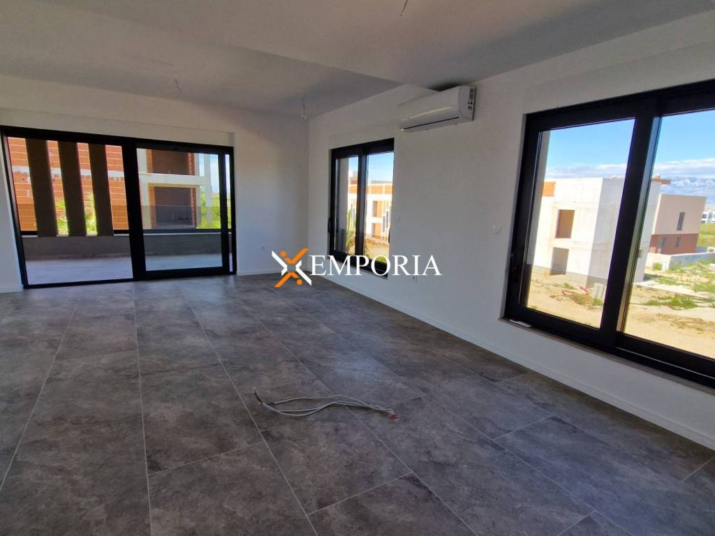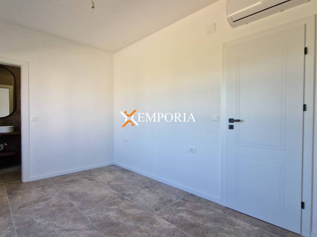 Gradnja zgrade ciglenim termoblokom s termoizolacijom fasade 10 cm stiropor. Podne obloge su pločice. Prozori su aluminijski s troslojnim staklom, električnim roletama i komarnicima. U svakoj spavaćoj sobi i u dnevnom boravku nalazi se klima uređaj. Osim toga, podno grijanje na struju u kupaonici. Nadalje, ulazna vrata stana su protuprovalna i protupožarna.