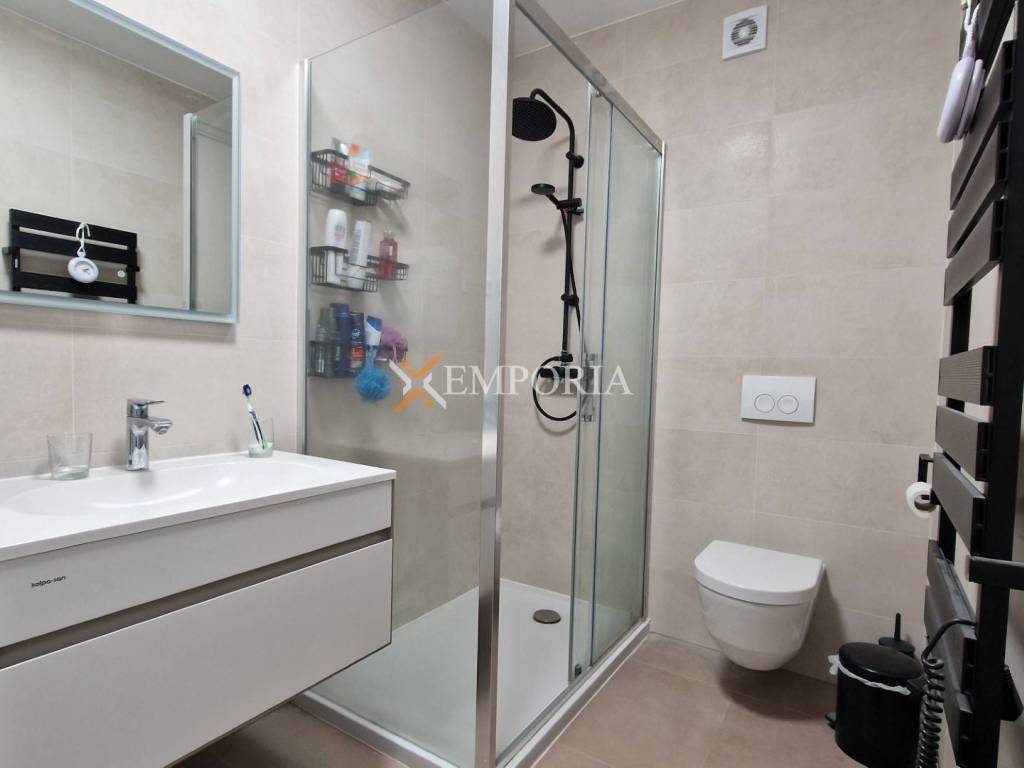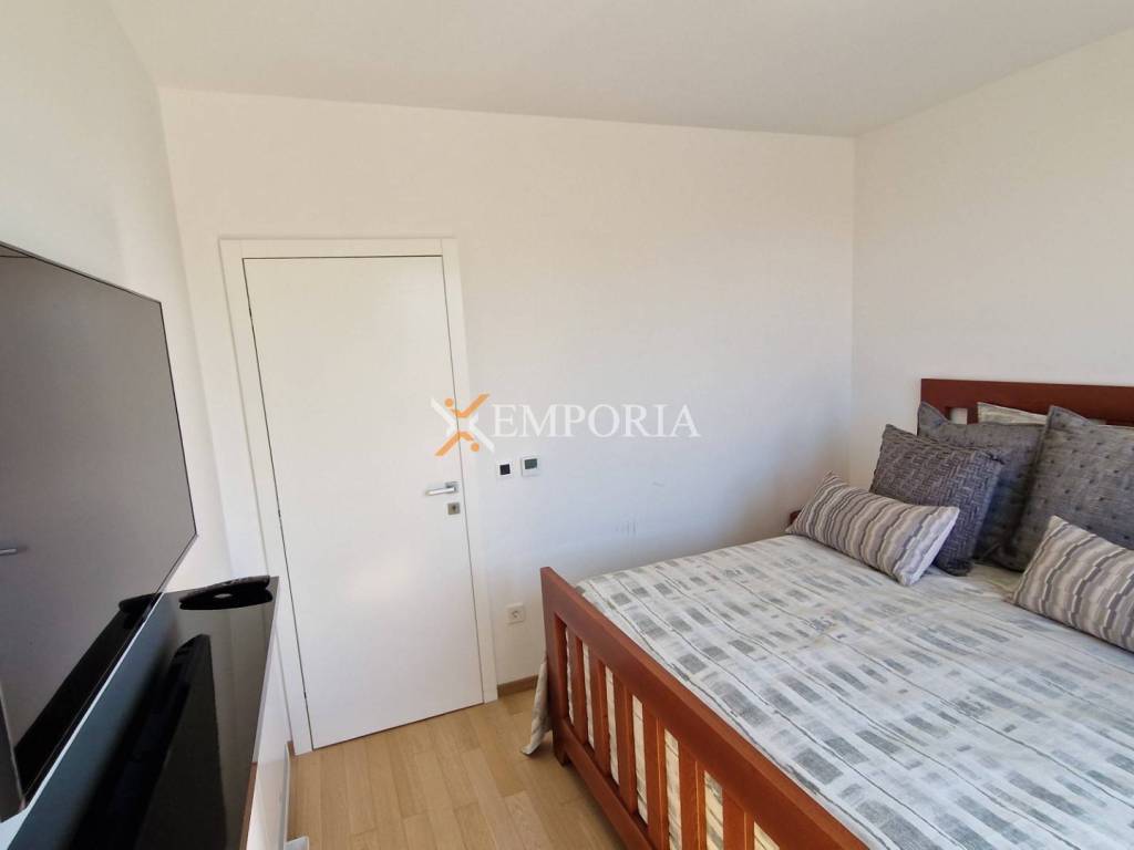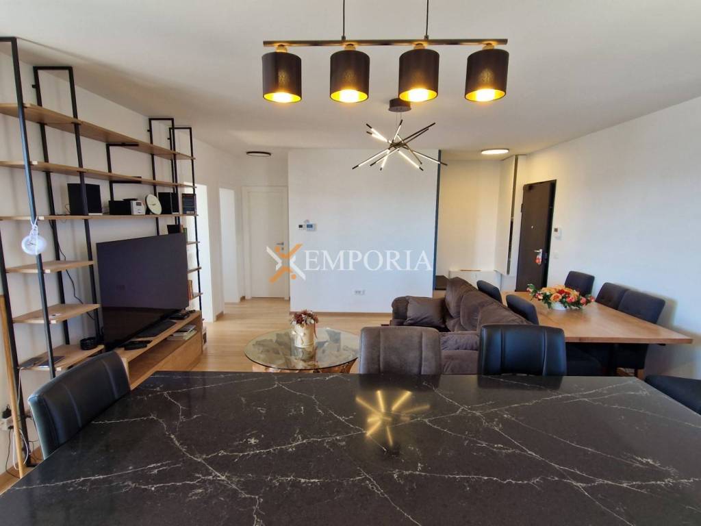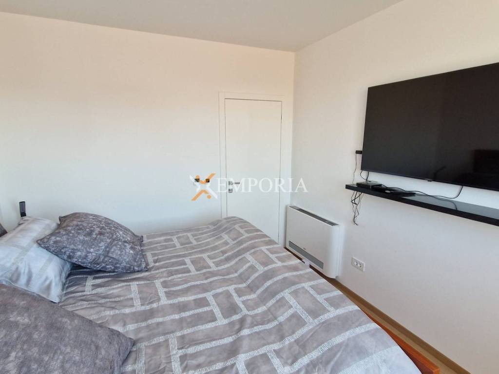Stan se prodaje namješten. Ima podno grijanje u cijelom stanu putem dizalice topline, a grijanje i hlađenje omogućene su i putem tri klima jedinice (dnevni boravak + sobe). Stolarija je aluminijska s troslojnim staklom, električnim roletama i komarnicima. Ulazna vrata su protuprovalna i protupožarna. Podovi su obloženi pločicama i parketom, a fasada zgrade izolirana je stiroporom debljine 10 cm.