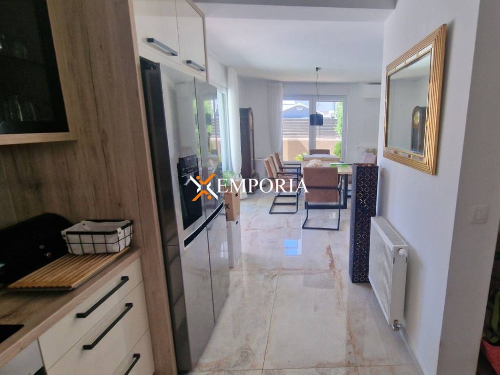 Kuća ima 5 klima uređaja – po jedan u dnevnom boravku i u svakoj spavaćoj sobi. Također je opremljena električnim radijatorima i dimnjakom. Stolarija je PVC s troslojnim staklom, roletama i komarnicima. Ulazna vrata su protuprovalna, a podovi su kombinacija pločica i parketa. Fasada je izolirana s 8 cm stiropora, a krov je novi, ravan i betonski.