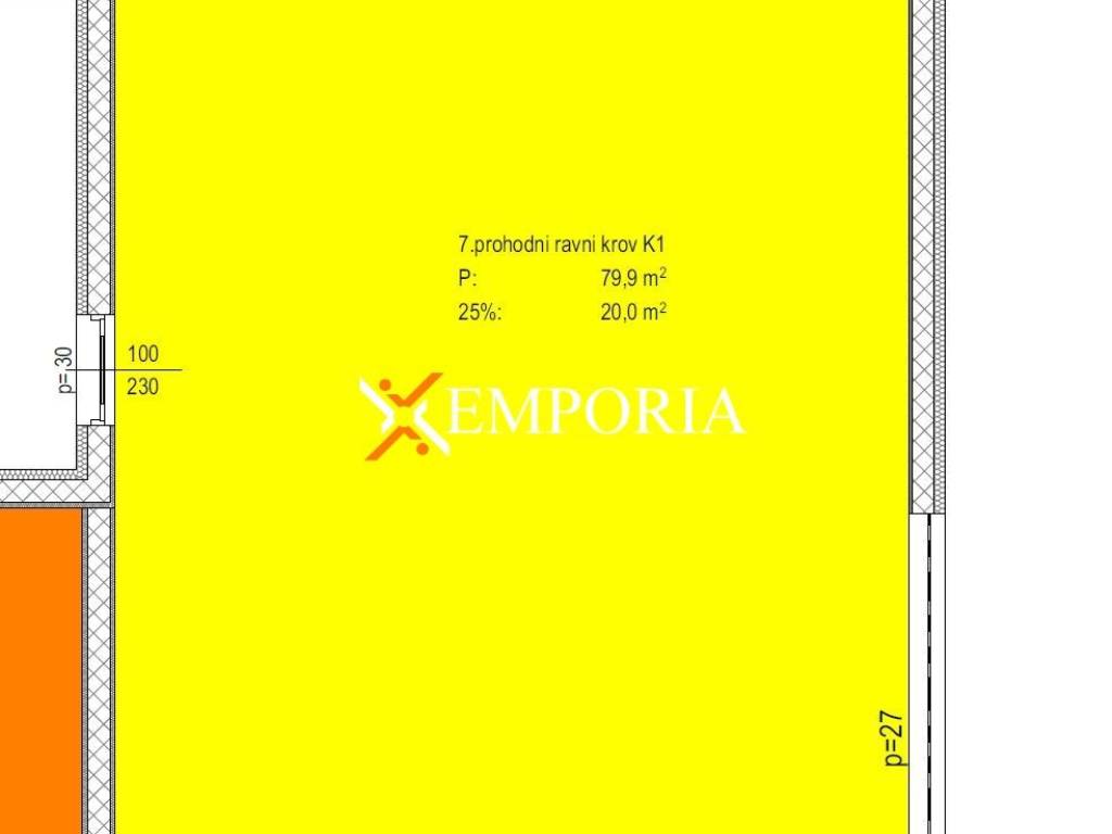 Stan se sastoji od hodnika, kuhinje s blagovaonicom i dnevnim boravkom, spavaće sobe s vlastitom kupaonicom, dodatne spavaće sobe, još jedne kupaonice te terase. Iz stana se izlazi na prostranu krovnu terasu površine 79,86 m², savršenu za uživanje na otvorenom i druženja s obitelji i prijateljima. Neto korisna površina stana iznosi 91,30 m², dok ukupna površina s pripacima iznosi 102,75 m².