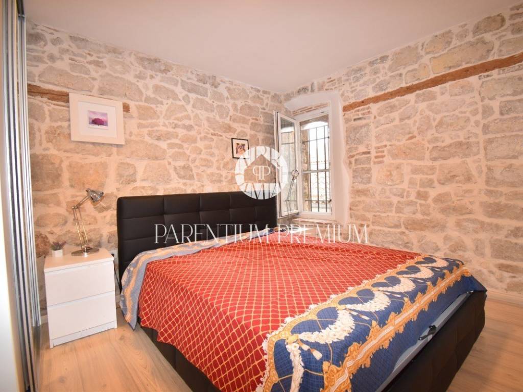 Na samo 300 m od mora, u centru starog grada nalazi se ovaj prekrasno uređen i renoviran stan u prizemlju. Stan je površine 44 m2 i sastoji se od dnevnog boravka, kuhinje sa blagavaonicom, jedne spavaće sobe i kupatila. Stan je kompletno renoviran, namješten te se kao takav prodaje. Ova je nekretnina zbog svoje lokacije odlična investicija u turističke svrhe iznajmljivanja. ID: 1708_0728