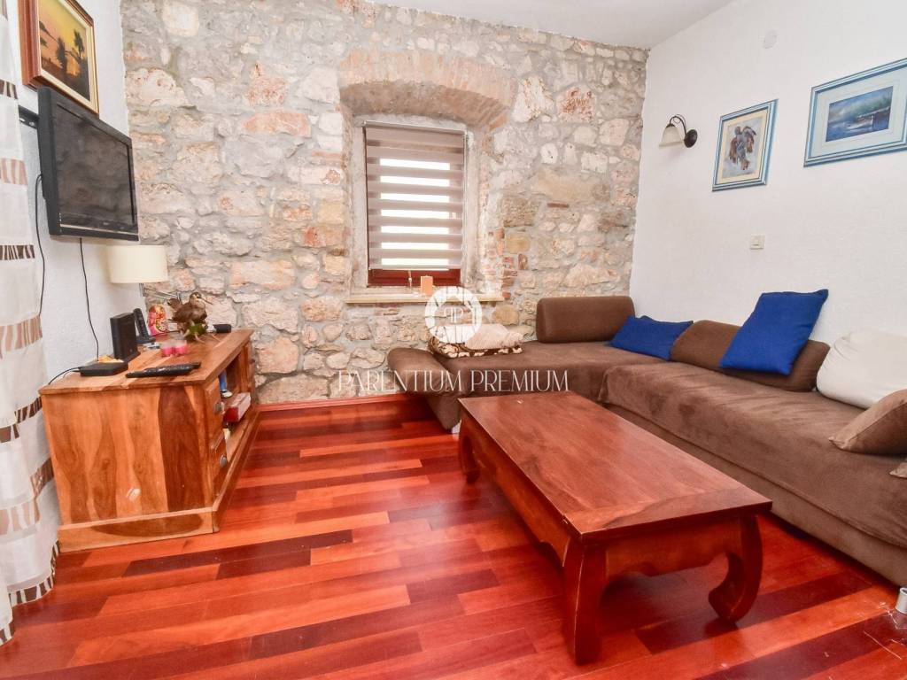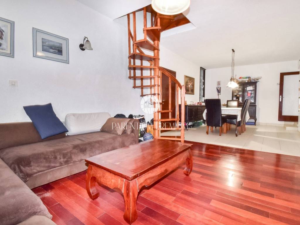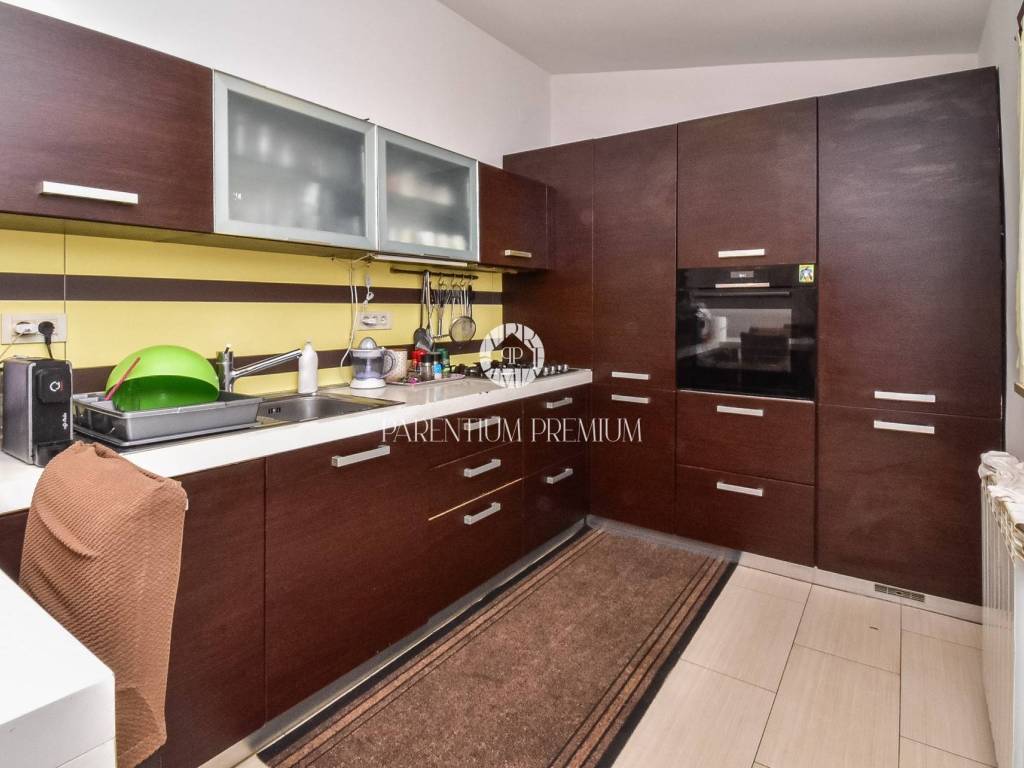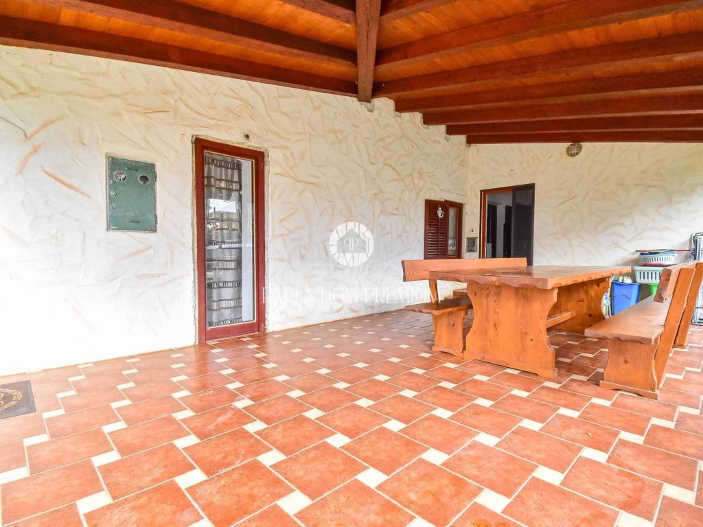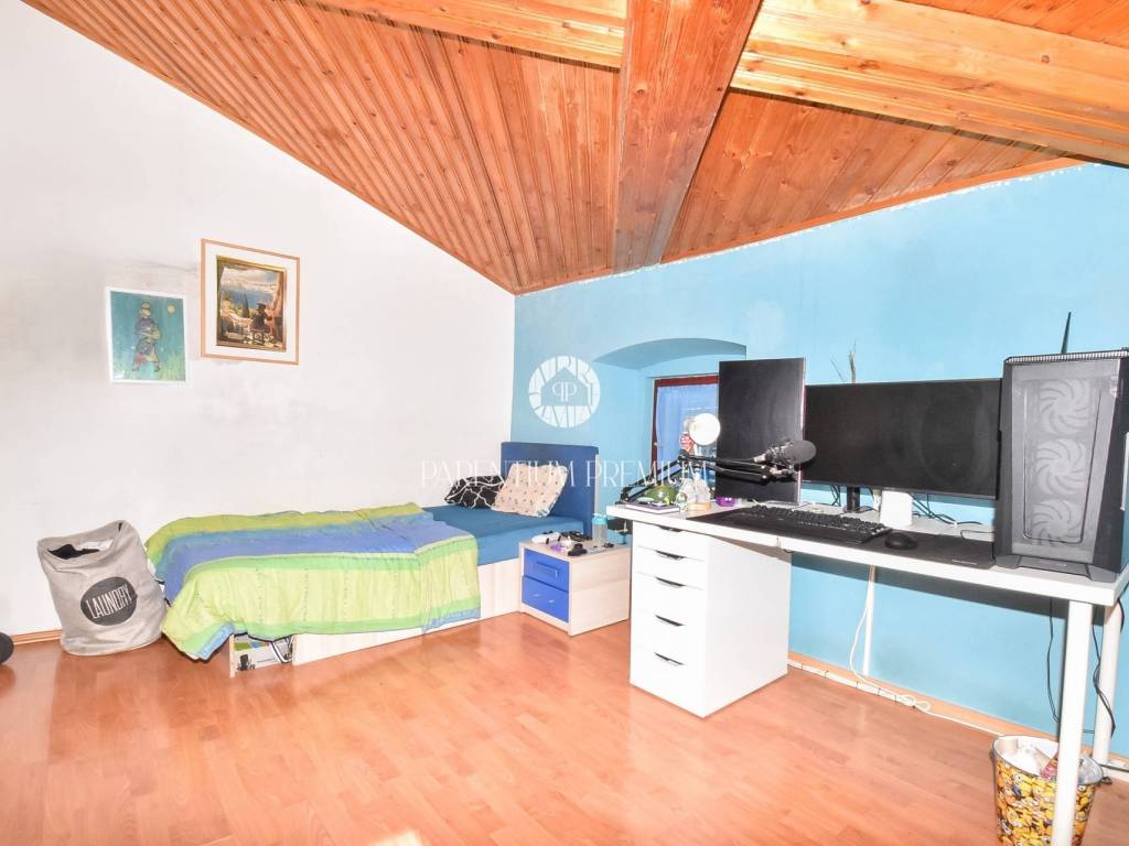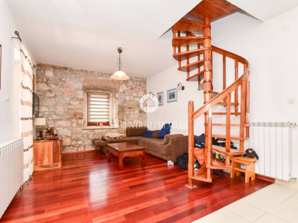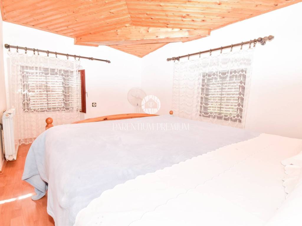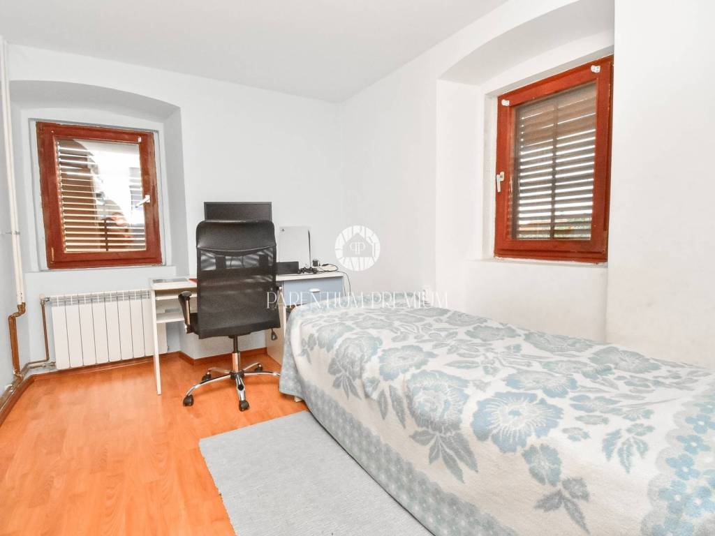 Prodaje se dvojna kuća 5km od mora i grada Poreča. Kuća se nalazi na zemljištu od 497m2, te se proteže na tri etaže ukupne površine 125m2. U prizemlju se nalazi ulazni hodnik, kuhinja s blagovaonicom, Veliki dnevni boravak s blagovaonicom, ostava i Kupaonica sa masažnom kadom. Na prvom katu se nalaze dvije spavaće sobe i jedna kupaonica. Na drugom katu se nalaze također dvije spavaće sobe sa kupaonicom. Kuća ima veliku natkrivenu terasu od 32m2 u prizemlju za uživanje u toplim mjesecima. U dvorištu se nalaze 3 parkirna mjesta i garaža od 32m2 koja se prenamjenila u konobu sa kaminom za druženja. Grijanje je centralno na lož ulje. Kuća je renovirana 2009g. Kuća se prodaje djelomično namještena. Ova kuća je idealno rješenje stambenog pitanja ili kao investicija.