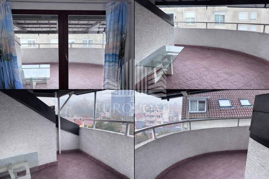 Prodaje se svijetao i dvoetažni stan na odličnoj lokaciji u Trešnjevci – Dobojska ulica, četvrti kat zgrade s velikom natkrivenom terasom.