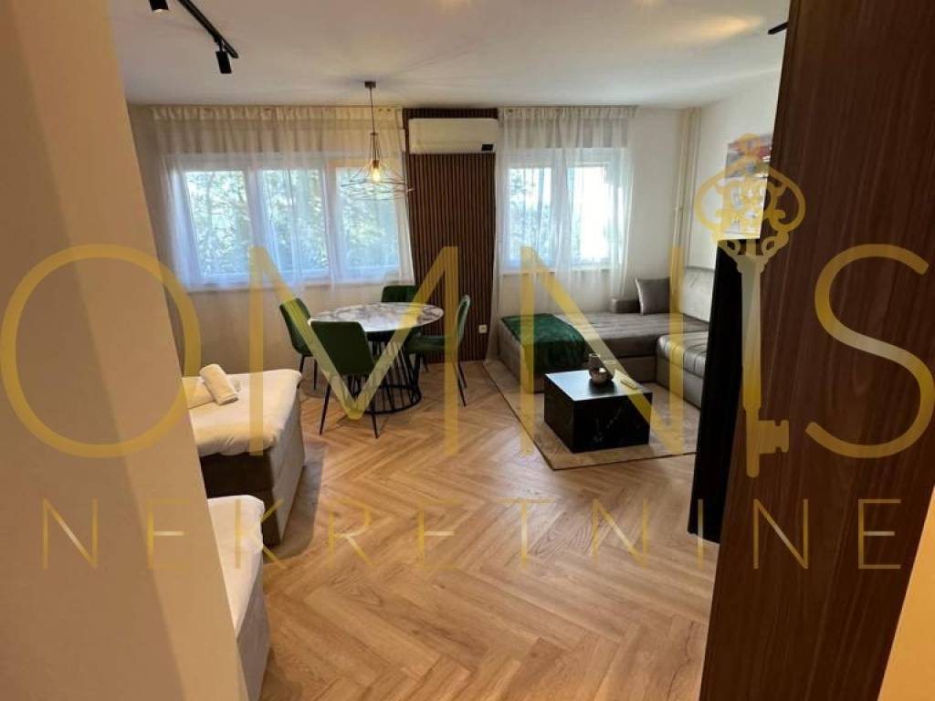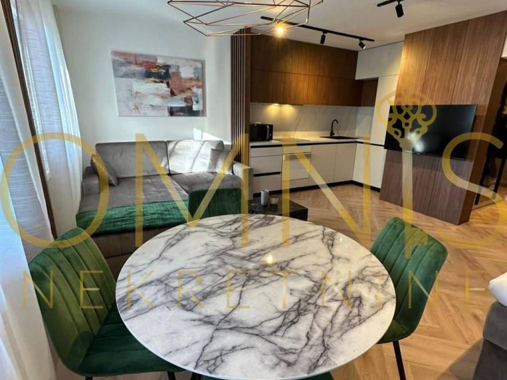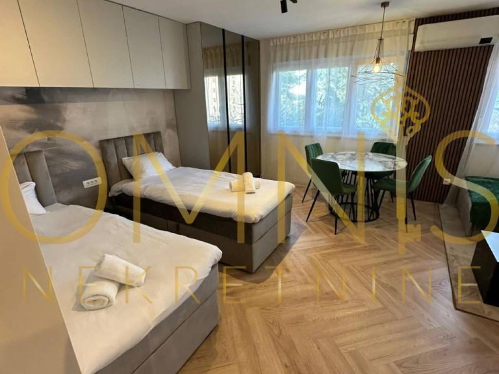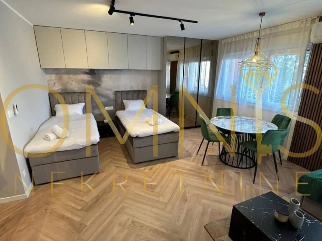 Garsonijera se sastoji od jedne prostrane prostorije koja objedinjuje dnevni boravak, spavaći dio i kuhinju, čime je prostor maksimalno iskorišten. Opremljena je modernom kuhinjom sa svim potrebnim aparatima, TV-om, perilicom i sušilicom rublja te udobnim krevetom, što omogućuje odmah useljenje bez dodatnih ulaganja.