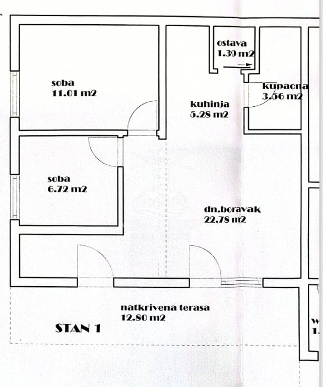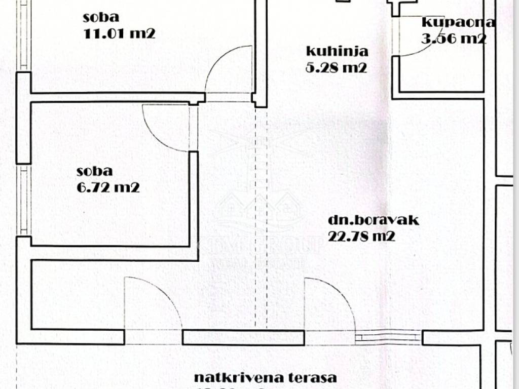 - kuhinja s blagovaonicom i dnevnim boravkom ukupne površine 28 m²