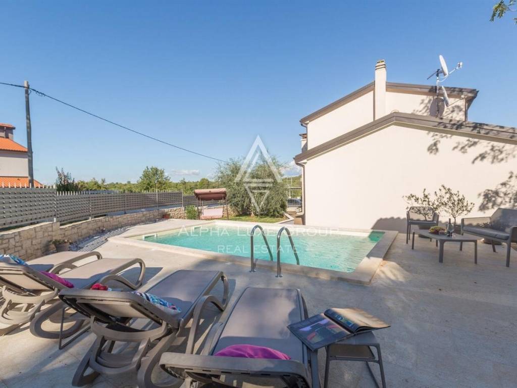 Na svega nekoliko minuta vožnje od Poreča i mora, u mirnom i uređenom okruženju bez buke i prometa, prodaje se kvalitetno građena obiteljska kuća s bazenom – idealna kao ugodan dom za život ili vrlo sigurna turistička investicija.
