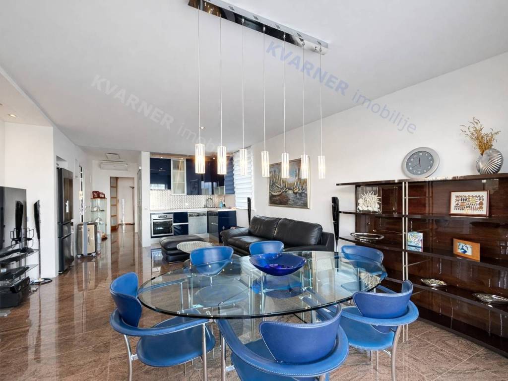 Prodaje se apartman na ekskluzivnoj lokaciji s prekrasnim pogledom na more i uređenim vrtom. Stan se sastoji od dvije spavaće sobe, kupaonice, kuhinje s blagovaonicom i dnevnim boravkom te natkrivene terase s koje se pruža otvoren pogled na more. Nekretnina je potpuno opremljena vrhunskim dizajnerskim namještajem i kvalitetnom opremom te se prodaje u potpunosti namještena. Uz stan ide i vrt površine 174 m², idealan za opuštanje i uživanje u vlastitoj zelenoj oazi, dok blizina plaže omogućuje savršen ljetni odmor. Na okućnici zgrade osigurana su dva parkirna mjesta.
