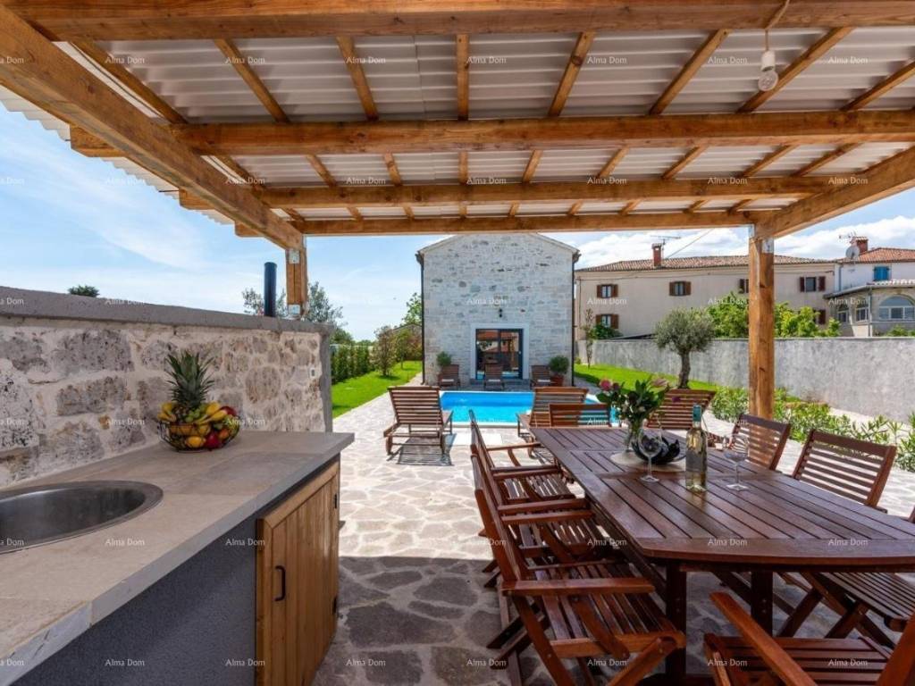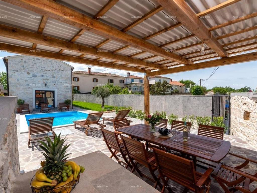 Prelijepa kuća u istarskom stilu, s privatnim bazenom, nalazi se na lijepoj i mirnoj lokaciji.