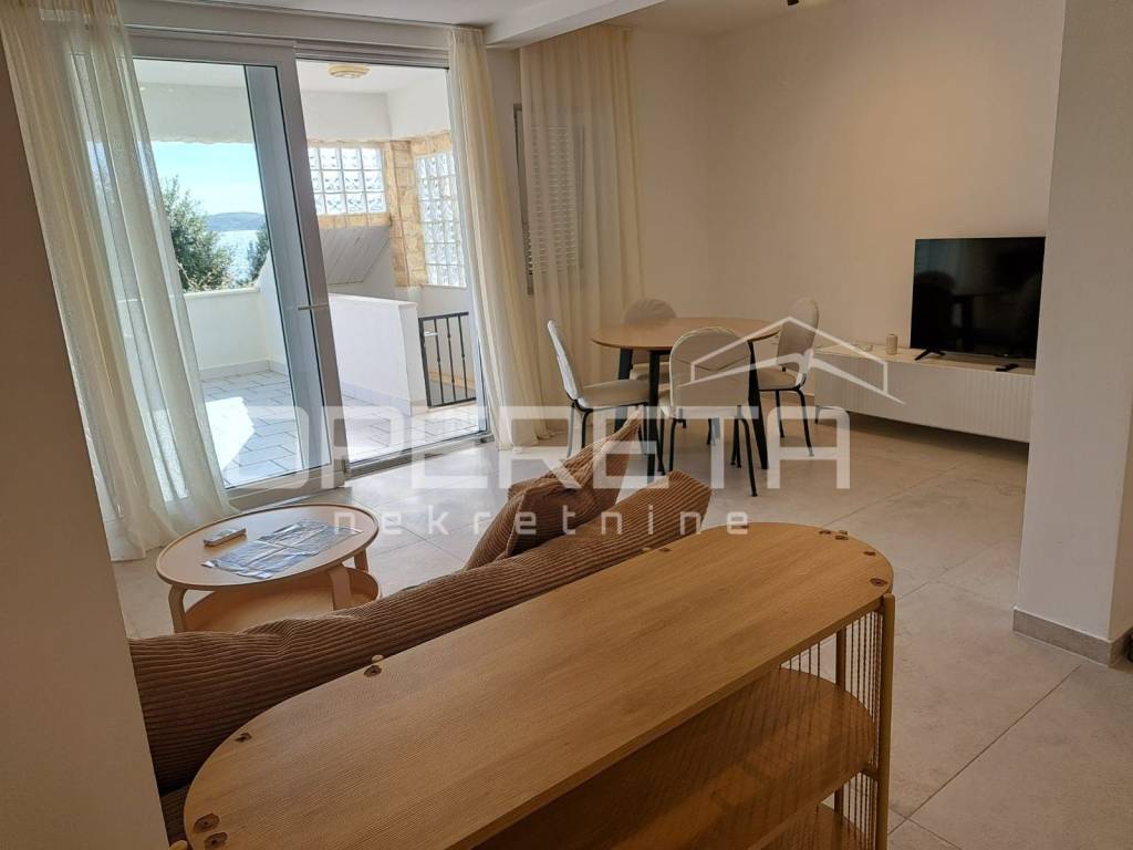 PRODAJA, NOVOUREĐENI STAN U URBANOJ VILI, VIS, 100 m DO MORA U prizemlju urbane vile ,koja se nalazi u neposrednoj blizini mora u Visu, prodaje se stan površine 60m2. Stan se sastoji od dnevnog boravka s kuhinjom i blagovaonicom, dvije spavaće sobe i kupaonice. Stan ima izlaz na natkrivenu terasu od 15 m2 ispod koje se nalazi dječje igralište i pripada mu vrt od 90 m2 sa roštiljem i solarnim tušem. Uz stan dolazi i jedno parkirno mjesto.