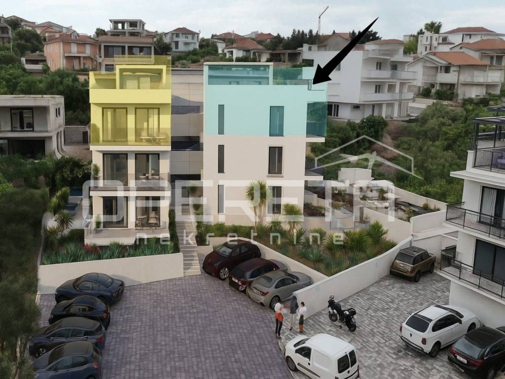 U samom centru Okruga Gornjeg, na mirnoj poziciji bez prometa glavne ceste i na nekoliko minuta hoda do plaže i svakodnevnih sadržaja, nalazi se dvoetažni trosobni penthouse na drugom katu novogradnje. Položaj na vrhu zgrade donosi privatnost i neometan pogled jer iznad nema stanara.