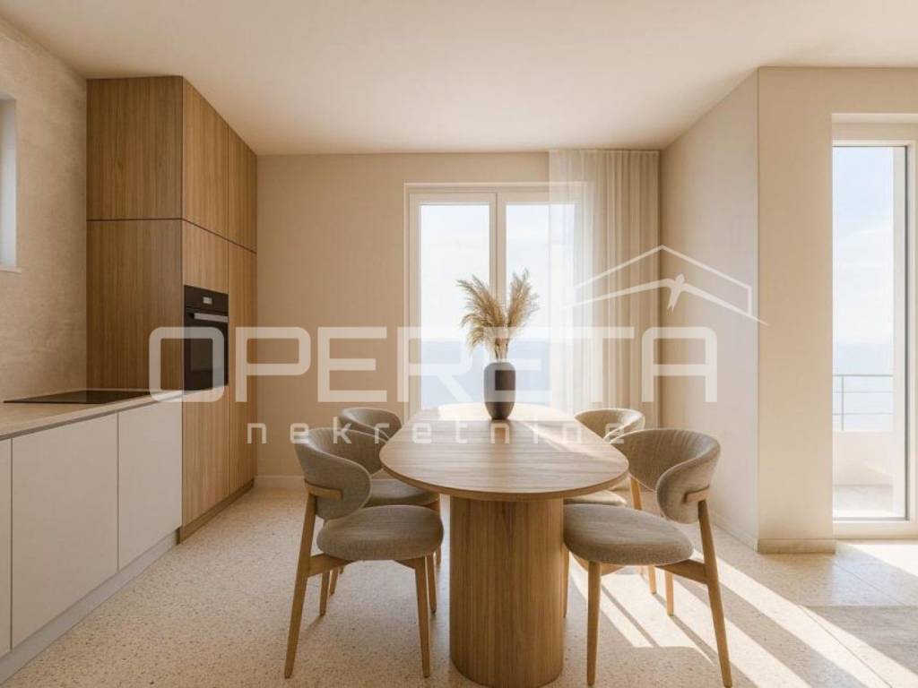 Na prestižnoj lokaciji u samom srcu Komiže u prodaji je stan u izgradnji površine 65 m2, smješten na drugom katu moderne urbane vile, s otvorenim pogledom na prirodu i crkvu svetog Nikole. Stan je osmišljen kao elegantan i funkcionalan životni prostor koji objedinjuje suvremeni dizajn i bezvremenski mediteranski karakter. Stan se sastojoi od dvije spavaće sobe, kupaonice te prostranog open space dnevnog boravaka s kuhinjom i blagovaonicom. Prodaje se u visokoj roh-bau završnoj fazi, s potpuno ugrađenim sanitarnim elementima, kvalitetnim podnim oblogama, postavljenom stolarijom, protuprovalnim ulaznim vratima i svim potrebnim priključcima, dok kuhinja i namještaj nisu uključeni, omogućujući personalizaciju interijera prema najvišim standardima. Gradnja se izvodi korištenjem vrhunskih materijala i suvremenih sustava, uključujući YTONG konstrukciju, kamenom obloženo stubište, PVC stolariju s ALU roletama i griljama, silikatnu završnu obradu pročelja s kamenim detaljima te sustav grijanja i hlađenja putem klima uređaja. Planirani završetak građevinskih radova predviđen je do 1. lipnja 2026. godine, dok su uporabna dozvola i etažiranje planirani tijekom jeseni iste godine.
