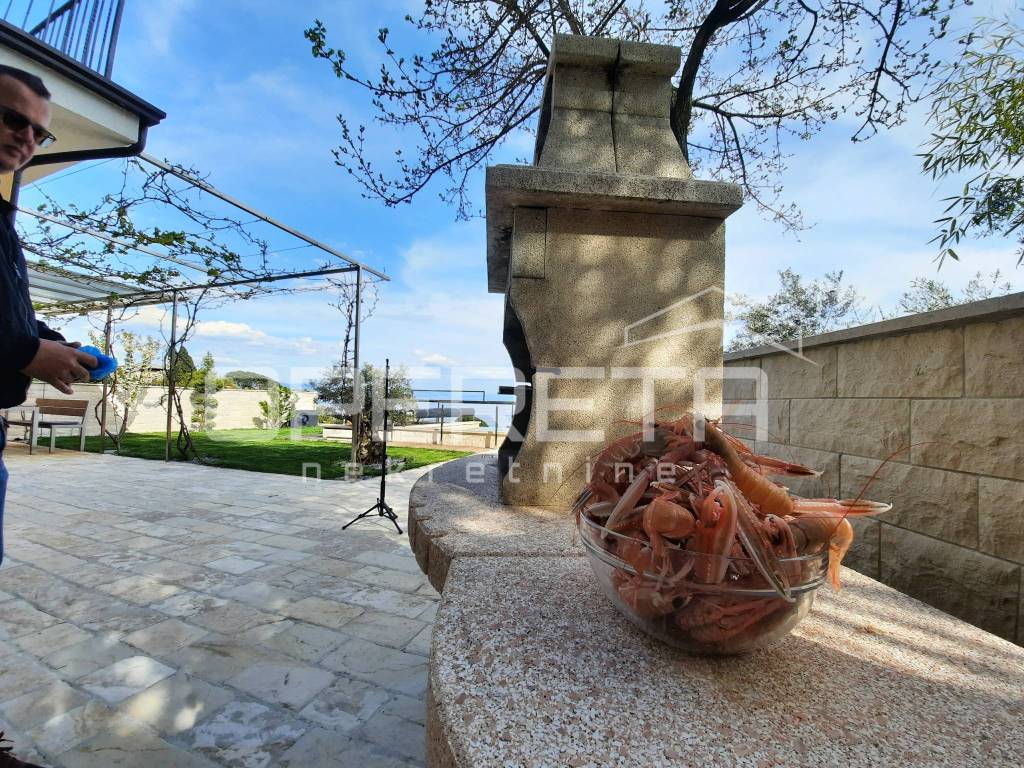 Grijani infinity bazen, natkriveni lounge prostor pod vinovom lozom, vanjski kamin