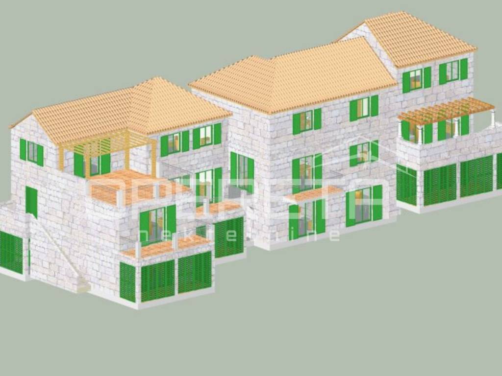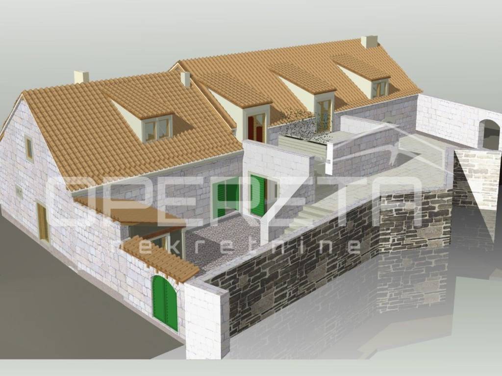 PRODAJA, TURISTIČKI POTENCIJAL S PROJEKTIMA REKONSTRUKCIJE NEREŽIŠĆA, BRAČ Prodaju se starine sa zemljištem ukupne površine 1841m2 u mjestu Nerežišća na otoku Braču za kojeg je napravljen projekt za turističke svrhe te su za iste ishodovane građevinske dozvole koje bi se trebale obnoviti. Ovo je idealna investicijska prilika sa turističkim potencijalom za investitore u bogatom povijesnom naselju u unutrašnjosti otoka Brača svega 10km udaljenosti od Supetra. Projekt čini spoj tradicionalne I moderne arhitekture na kojem je naglasak na očuvanje autentičnosti, tradicije, ekologije I kulturne baštine.