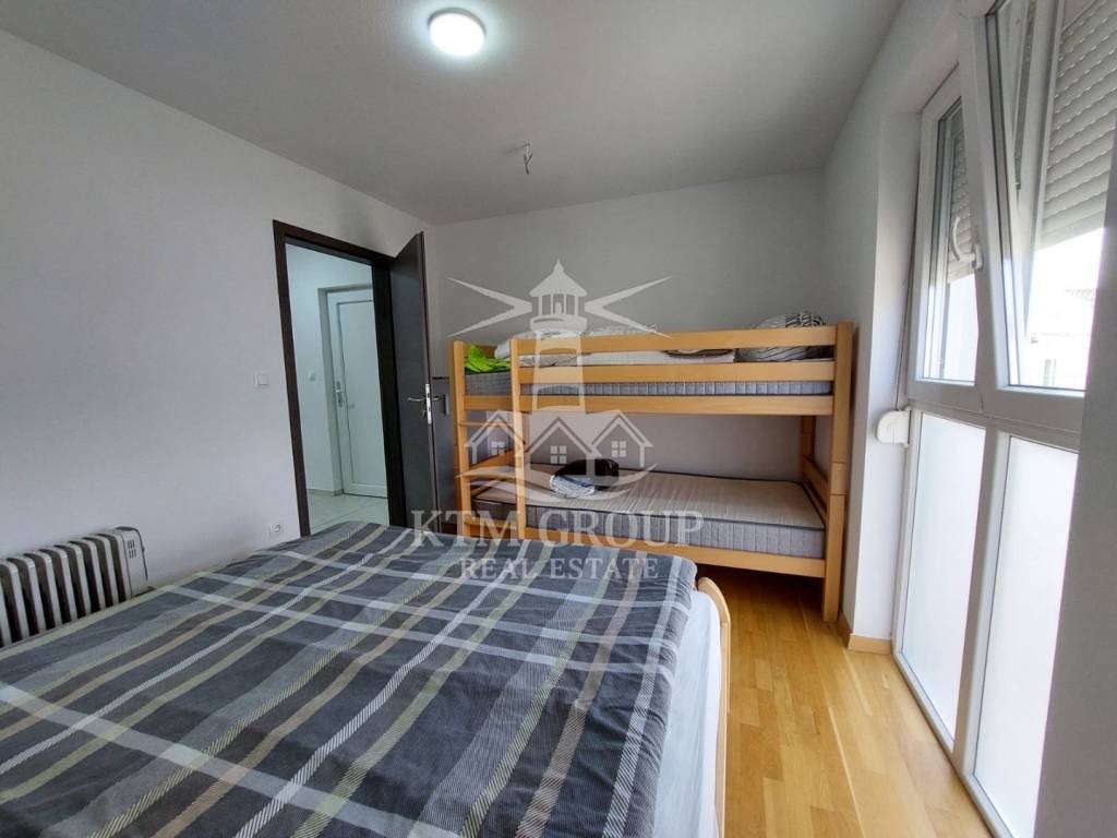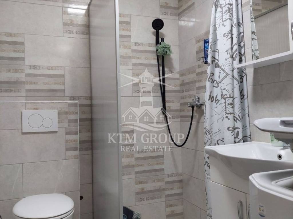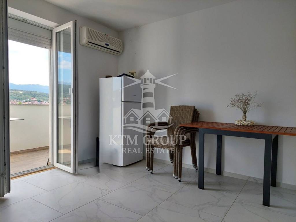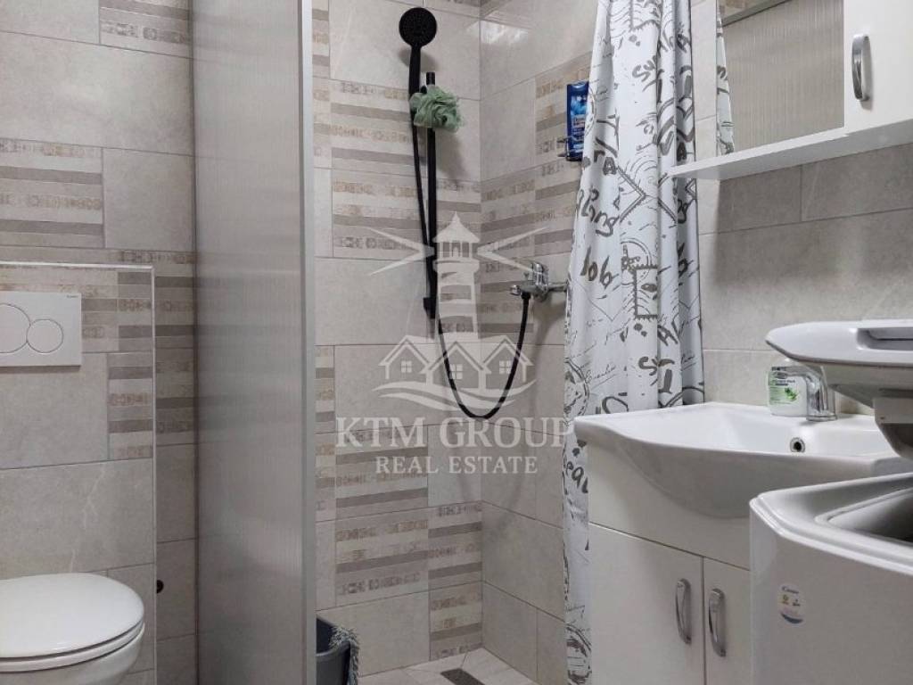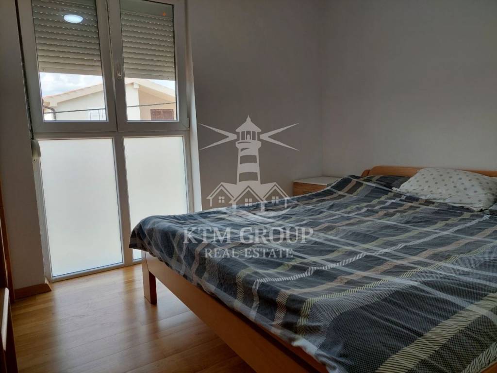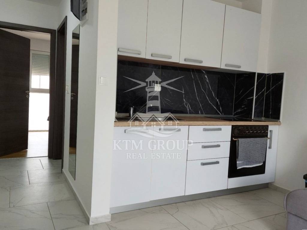 Apartman je kompletno uređen i namješten 2022. godine te se prodaje u potpunosti namješten, što omogućuje odmah useljenje bez dodatnih ulaganja. Sastoji se od ulaznog hodnika, kuhinje s blagovaonicom i dnevnim boravkom, kupaonice s tuš kabinom te jedne spavaće sobe. Iz dnevnog boravka izlazi se na terasu koja je osunčana veći dio dana i s koje se pruža lijep pogled na more. Prostor je moderno uređen, opremljen PVC stolarijom i klima uređajem.