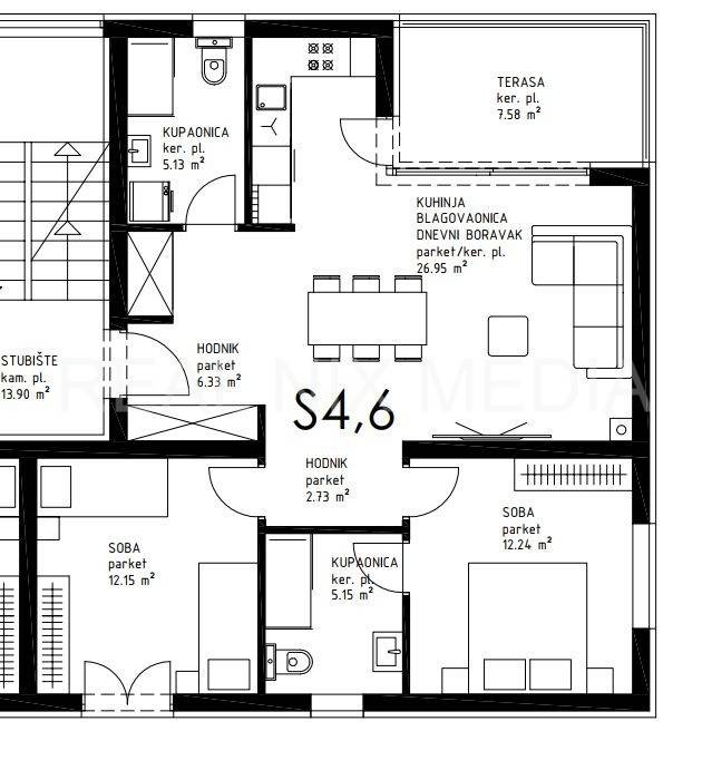NOVOGRADNJA! Zgrada sa ukupno šest stambenih jedinica na izuzetno mirnoj lokaciji, zgrada se nalazi u slijepoj ulici, 600 m do mora i pješčane plaže. Predmetni stan oznake S6 nalazi se na drugom katu stambene zgrade te se sastoji od kuhinje, blagovaonice i dnevnog boravka sa izlazom na terasu, dvije spavaće sobe, dvije kupaonice te predsoblja. Stanu pripada jedno vanjsko parkirno mjesto. Svaka prostorija ima svoju klima uređaj, podno grijanje u kupaonicama i dnevnom boravku, PVC stolarija sa elektro roletama i komarnicima, termoizolacija stiropor 8 cm.. Uredna dokumentacija. Predviđeni rok završetka: ljeto, 2025. godine.