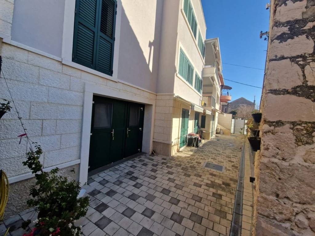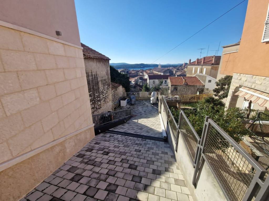 Ekskluzivno posredujemo pri prodaji lijepe kuće u gradu Šibeniku, u centru grada, Varoš. Kuća je sagrađena na parceli od 310 m2, ima u tlocrtu 170 m2.Ima okućnicu od 140 m2, urednu i održavanu, te ulaz u dvorište sa ceste i sa stepenica koje se spuštaju na rivu. Sastoji se od prizemlja , gdje je kotlovnica na pelete, površine 20 m2, svaki stan ima podno grijanje i etažno centralno grijanje, spreme od 20 m2, te jednosobnog stana. Na katu su uređena dva jednosobna stana, od koji svaki ima dio terase. Na drugom katu je lijepi trosoban komforan stan, s terasom s pogledom na more, te na potkrovlju solari, i jedna lijepa terasa s predivnim pogledom. Kuća ima dva, a moguće i tri parkirna mjesta sa sjeverne strane. Kuća je nova, u izvanrednom stanju, kompletno novopremljena, useljiva odmah, pogodna za ugodno stanovanje ali i bavljenje turizmom obzirom na lokaciju. Vlasništvo uredno, pogodna za kredit.