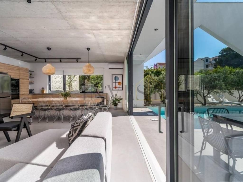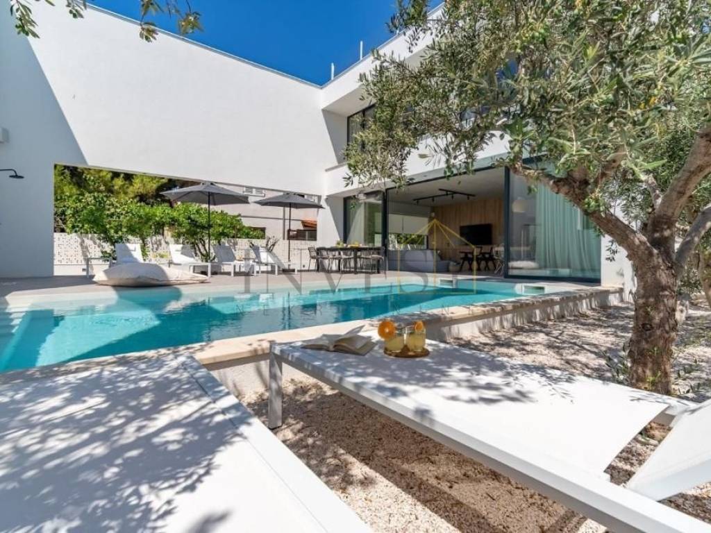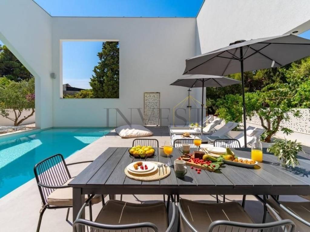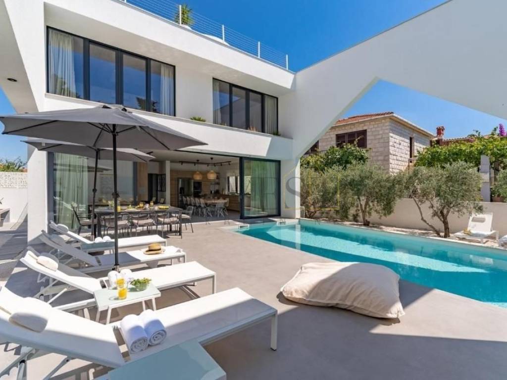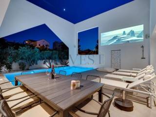 Ova moderna vila, smještena na sjevernoj strani otoka Brača, predstavlja oazu elegancije i sofisticiranog dizajna. Prostire se na tri etaže s ukupnom površinom od 366 m2, smještena na zemljištu od 480 m2.