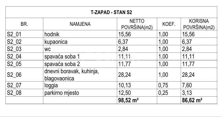 Na prvom katu moderne novogradnje u Brodarici smješten je ovaj prostrani dvosobni stan, udaljen svega 130 metara od mora. Stan se sastoji od hodnika, dvije spavaće sobe, kupaonice te dnevnog boravka s kuhinjom i blagovaonicom, s izlazom na loggiu. Stanu pripada i jedno parkirno mjesto. Neto površina stana iznosi 83,77 m², dok korisna površina iznosi 72,79 m².
