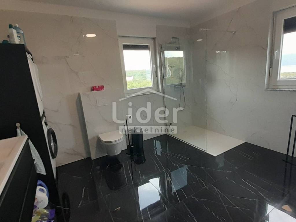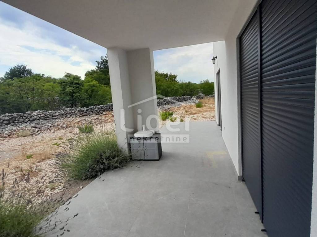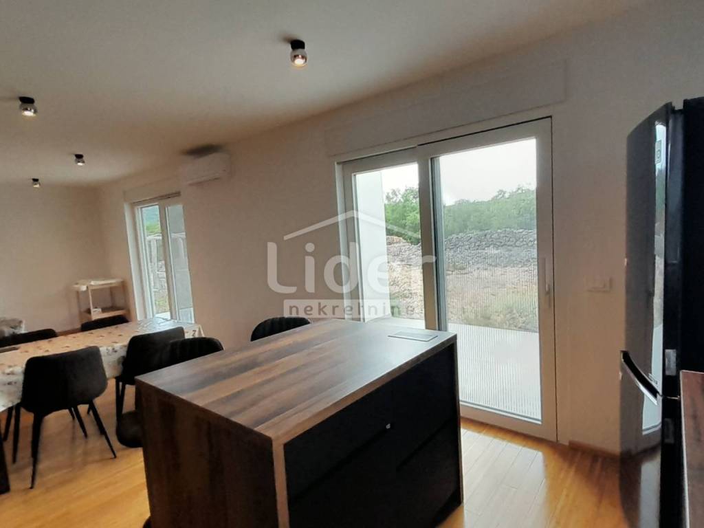 Nekretnina se nalazi na samo par minuta pješice do mora i do stare jezgre grada Vrbnika. Osmišljena je kao jedan komforan stan za obiteljski život. U prizemlju se nalazi veliki dnevni boravak s kuhinjom i blagovaonicom,spavaća soba,hodnik,spremište,kupaonica i terasa s izlazom na prostranu okućnicu. Unutrašnje stepenice vode do kata gdje se nalaze tri spavaće sobe,walk in ormar, komforna kupaonica s vešerajem i natkriveni balkon. Sve je opremljeno s luksuznim namještajem po mjeri koji je u cijeni i aparati su pod garancijom.