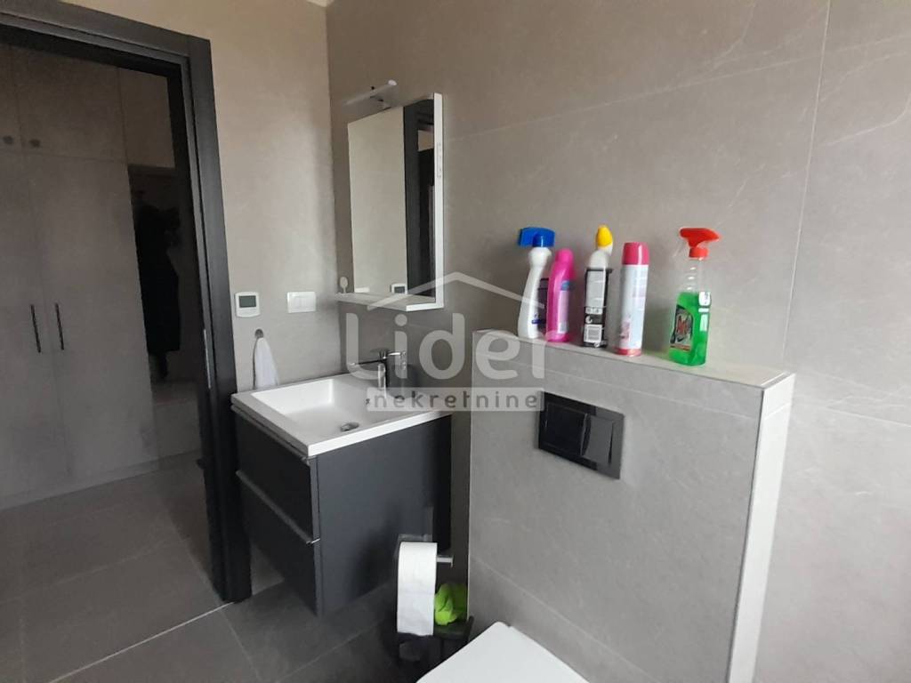 U dnevnom boravku i spavaćim sobama postavljene su drvene podne obloge ,a kupaonice su obložene kvalitetnim pločicama velikih dimenzija.Stolarija je aluminijska s električnim roletema i komarnicima.