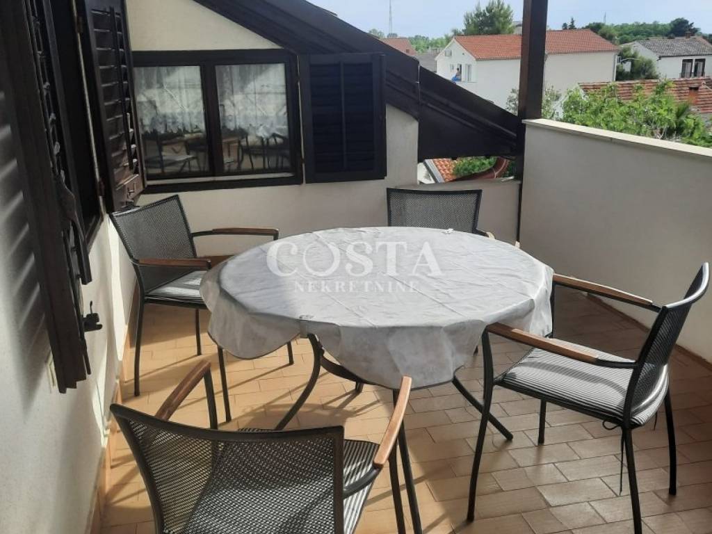 Prodaje se etažiran stan u apartmanskoj kući u mjestu Sabunike pokraj Zadra. Stan površine 75,08 m2 nalazi se u potkrovlju etažirane kuće na dva kata. Sastoji se od dnevnog boravka, odvojene kuhinje i blagovaone, kupaonice, dodatnog wc-a, četiri spavaće sobe i terase od 18 m2. U prostranom ograđenom dvorištu nalazi se vrt i privatni parking.