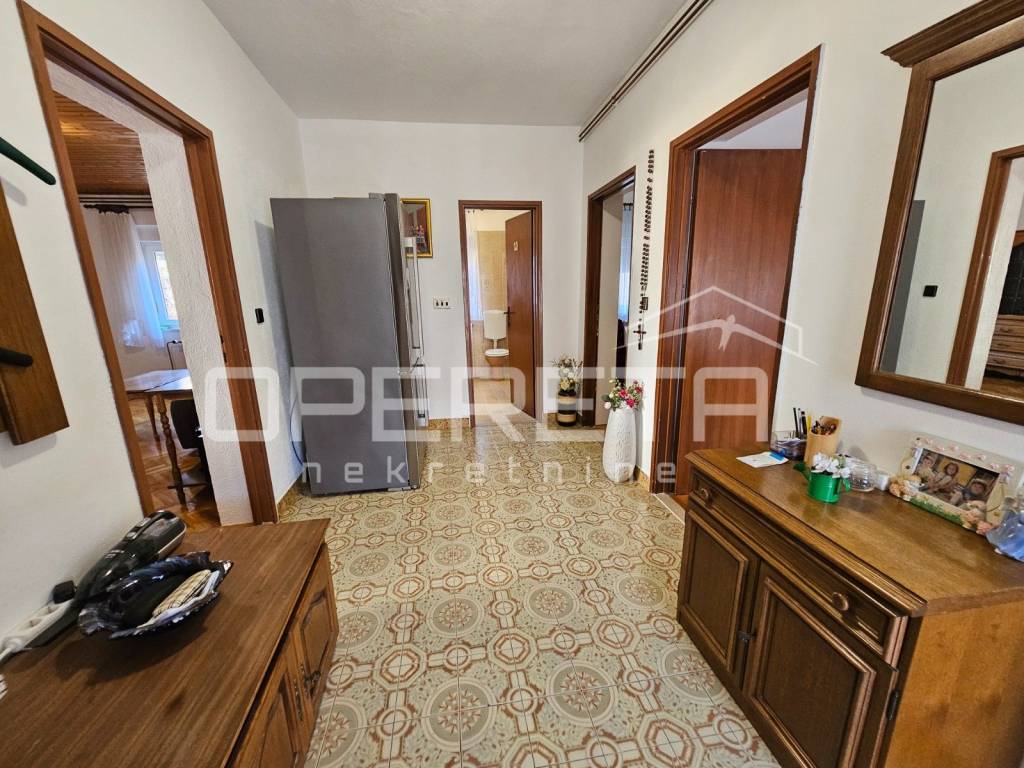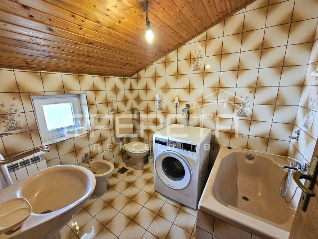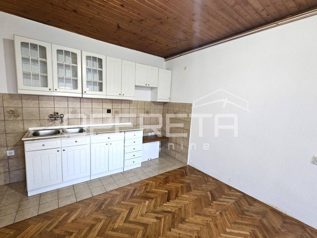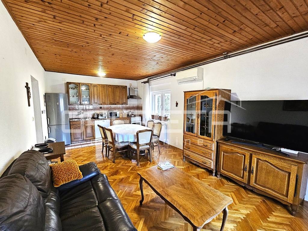 Prizemlje čini dvosobni stan s kuhinjom, blagovaonicom i dnevnim boravkom, kupaonicom s toaletom te prostranim ulaznim hodnikom, dok se na istoj etaži nalazi i dodatna prostorija koja služi kao sprema i kotlovnica.