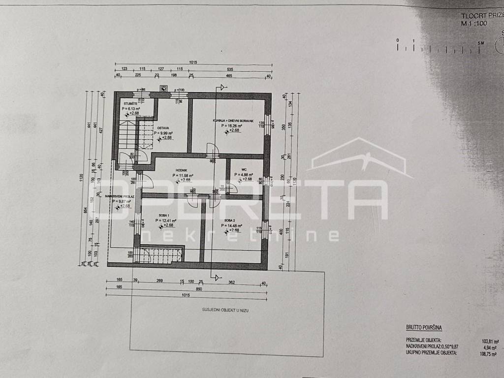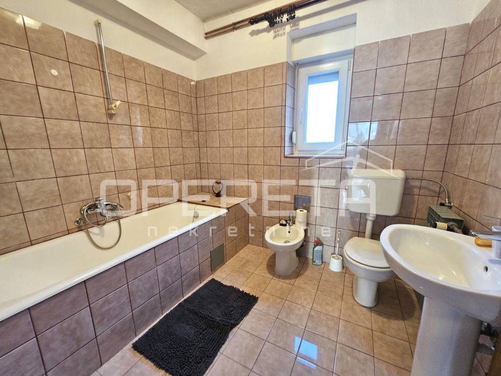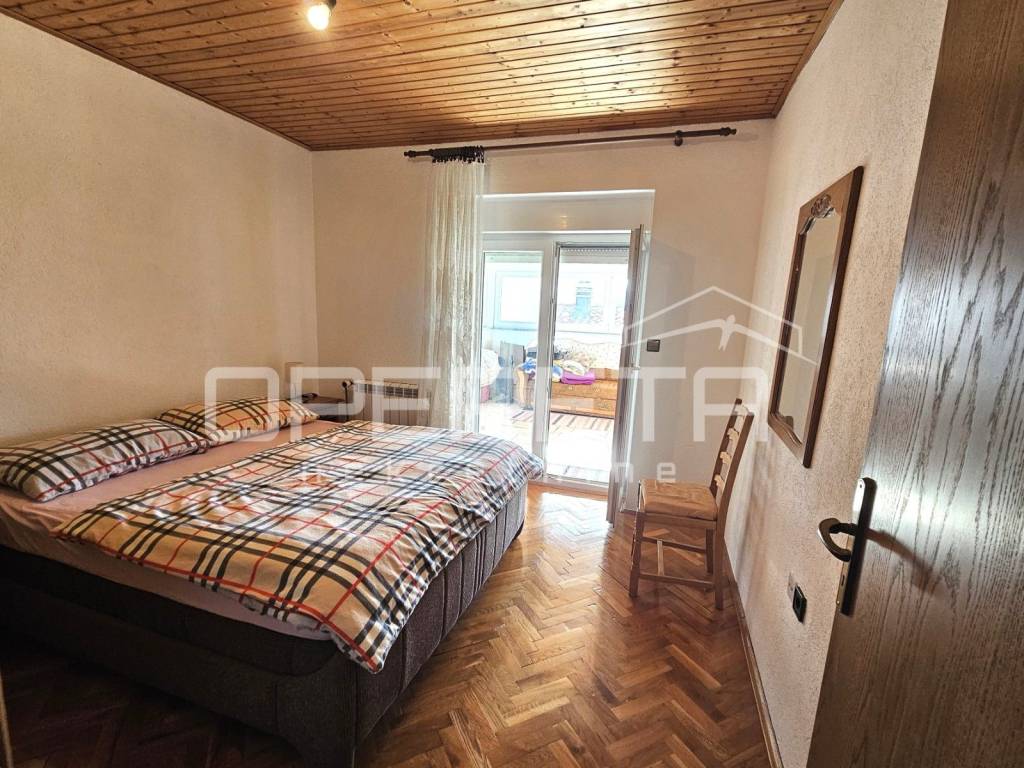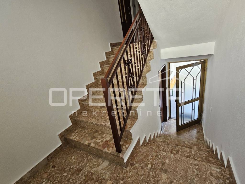 Prizemlje čini dvosobni stan s kuhinjom, blagovaonicom i dnevnim boravkom, kupaonicom s toaletom te prostranim ulaznim hodnikom, dok se na istoj etaži nalazi i dodatna prostorija koja služi kao sprema i kotlovnica.