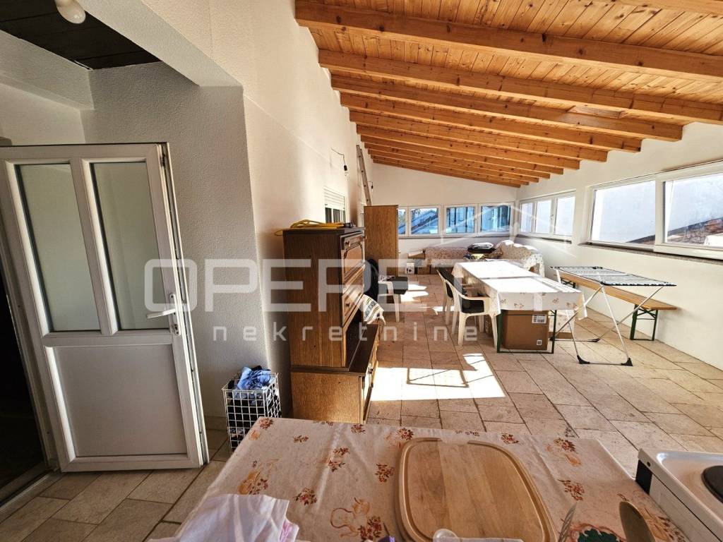 Drugi kat čini zasebna stambena jedinica s jednom spavaćom sobom, hodnikom, kupaonicom te kuhinjom, blagovaonicom i dnevnim boravkom. Posebna vrijednost ove etaže je velika natkrivena terasa površine čak 48 m.