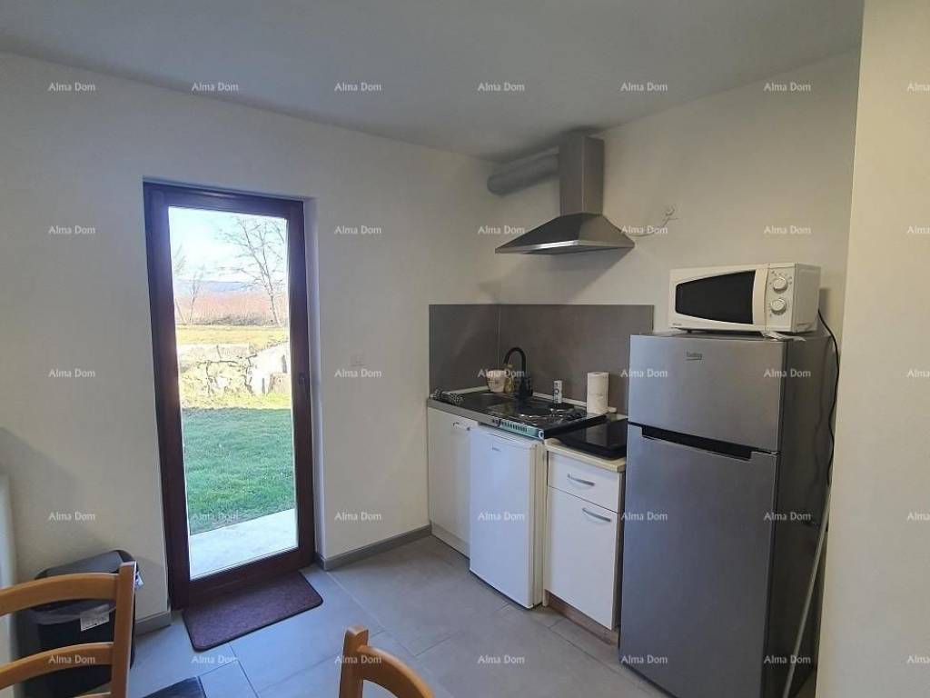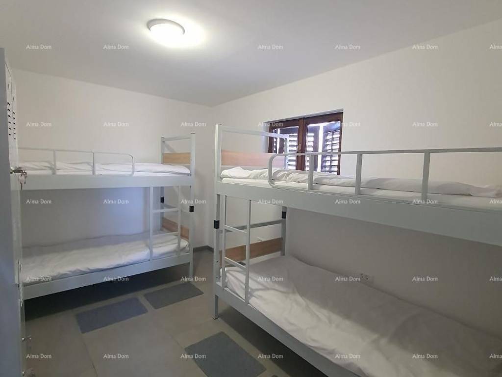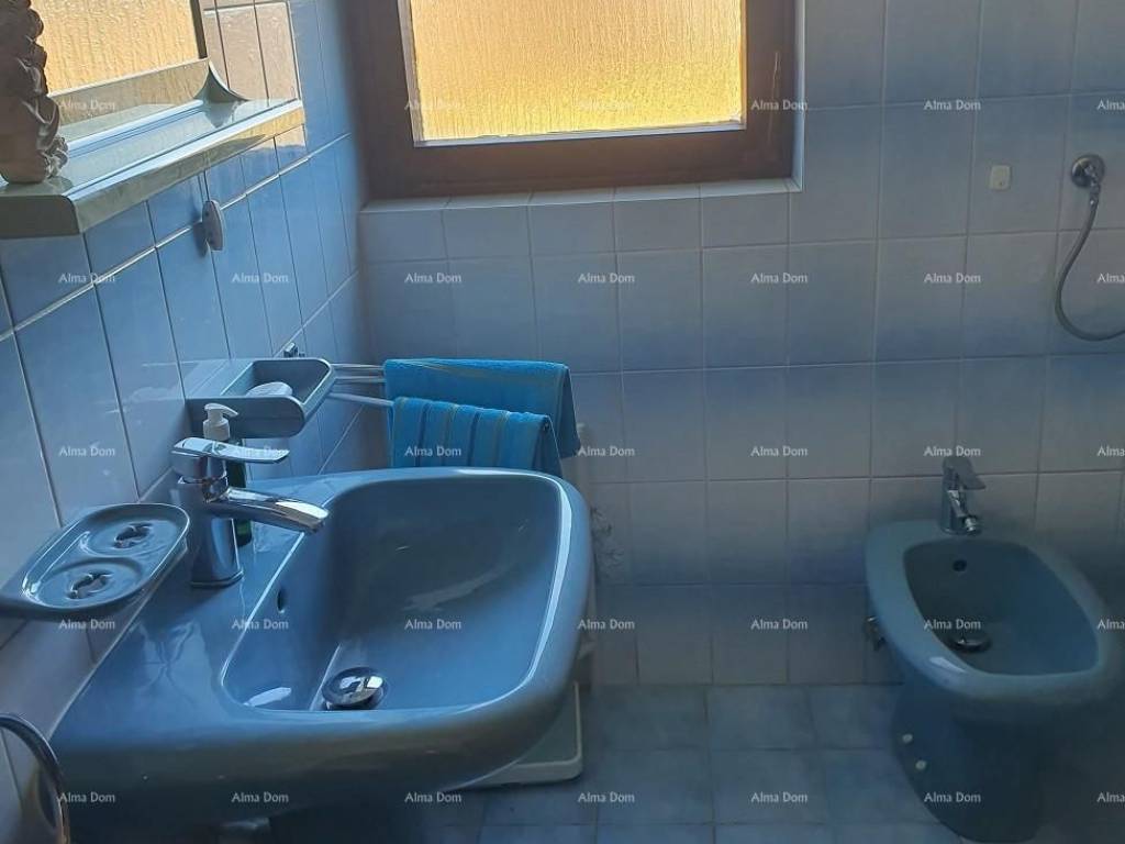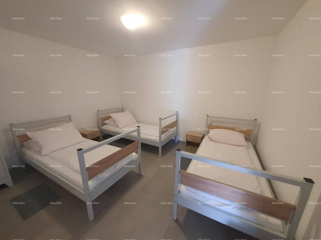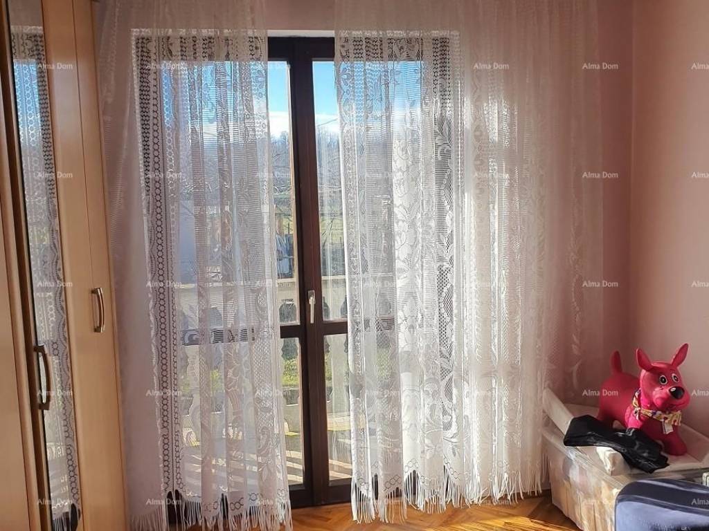 Kuća se nalazi na neravnom terenu pa na prilazu se vidi 2 kata, a u suštini ima još jedan kat u prizemlju s druge strane kuće, koji je u tom slučaju se računa kao suteren. U suterenu stan je kompletno adaptiran za radnike i sastoji od dvije spavaće sobe, kuhinje i dnevnog boravka te dva kupatila s tušem i zasebnog WC-a. Sve prostorije su klimatizirane. U prizemlji se nalazi stan koji nema klimu ali ima peć na pelet u svrhu grijanja a koji se sastoji od 3 sobe, prostranog dnevnog boravka te kupatila. Unutarnjim stubištem se ide na prvi kat gdje se nalazi koji se također sastoji od dnevnog boravka s kuhinjom, 3 spavaće sobe i kupatila. Stan ima klimu u dnevnom boravku. Svaki stan ima oko 90m2. Kuća se prodaje kompletno opremljena. Uz kuću se nalazi i garaža 24 m2. Kuća je na parceli od 502 m2, ali u cijeni je još jedna parcela do nje. Tako da sveupukno je 1200 m2. Na toj drugoj parceli se može sagraditi još jedan objekt za odmor. Ovdje su zatraženi uvjeti za izgradnju moderne prizemnice s bazenom. U slučaju da kupcima nije inetersantno kupiti obje parcele nekretnine u kompletu, moguće je kupiti samo kuću na postojećoj parceli od 502 m2 po cijeni od 360.000 eura.