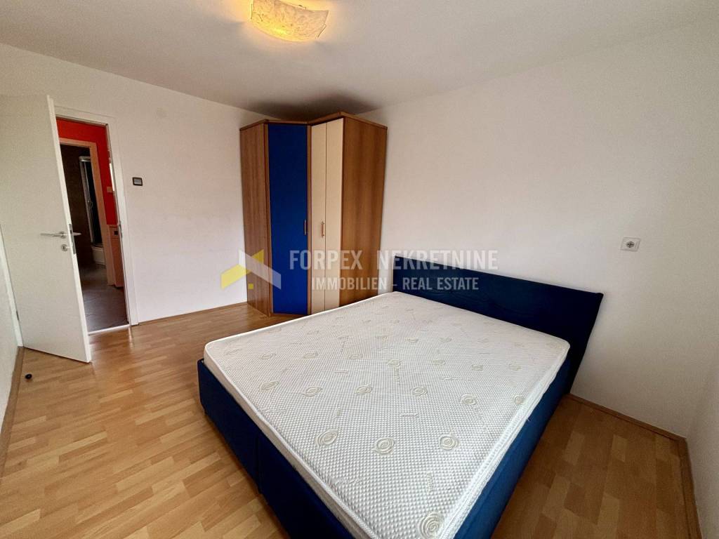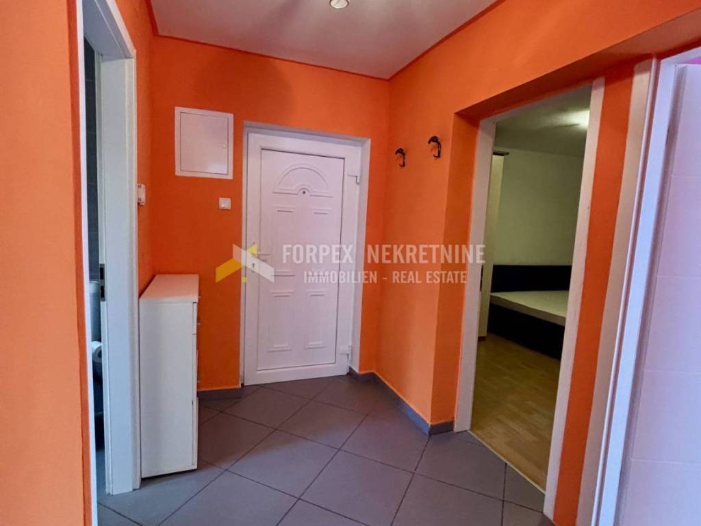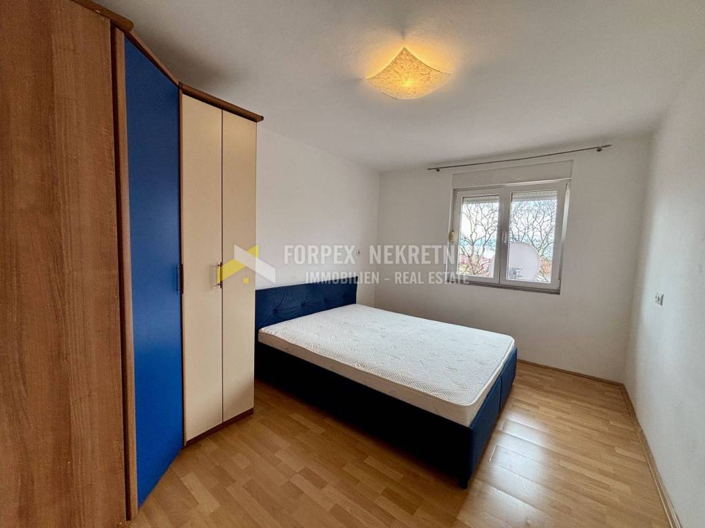 Nalazi se na drugom katu uredne stambene zgrade sa 6 stanova. Sastoji se od predsoblja, spavaće sobe, kupaonice, kuhinje sa blagovaonicom, te dnevnog boravka sa izlazom na balkon. Grijanje i hlađenje je putem klima uređaja. Stan je održavan, svijetal, vrlo komotan. Renoviran je prije par godina. Namješten je i kao takav se prodaje. Pripada mu dio spremišnog prostora.