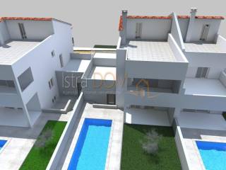 Prizemlje uključuje: -Kuhinju i blagovaonicu -Dnevni boravak -Jednu spavaću sobu -Kupaonicu -Hodnik Iz blagovaonice i dnevnog boravka moguće je izlaziti u vrt i na bazen.