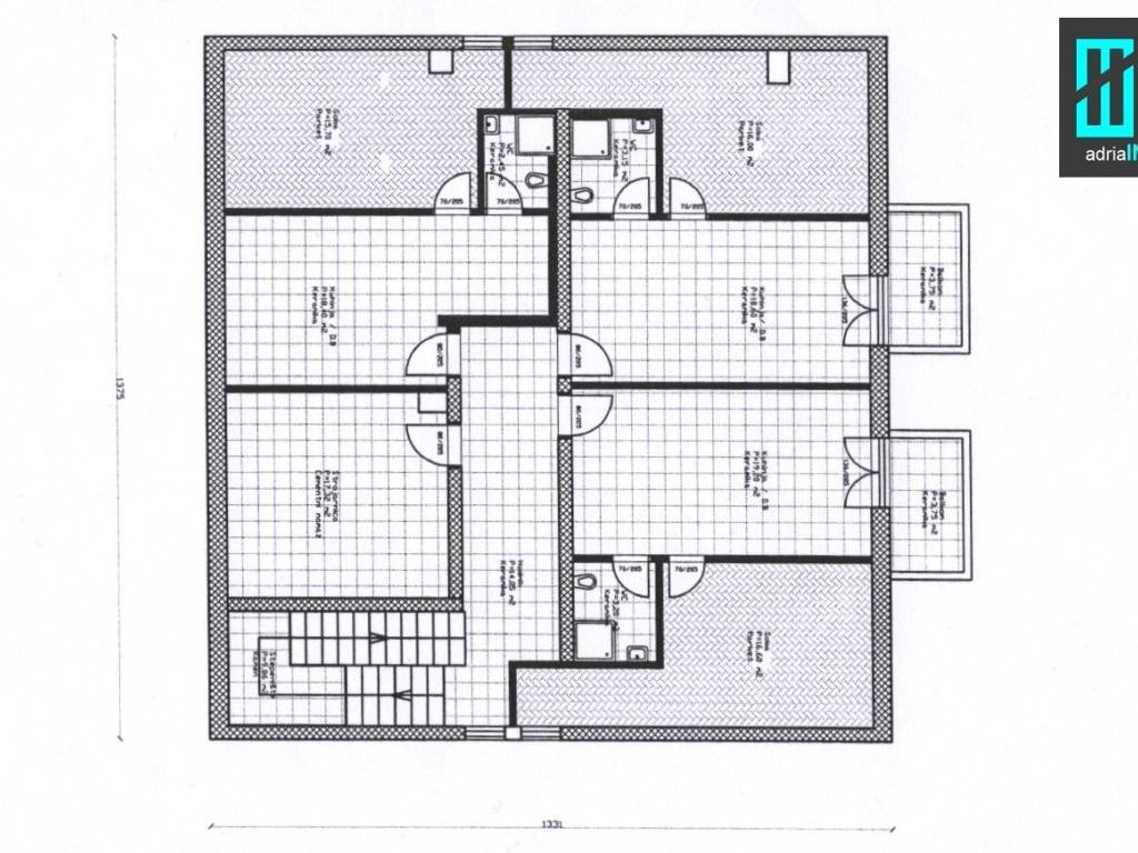 • 1. kat: 3 apartmana – jedan dvosobni, jedan jednosobni i jedan studio apartman + praona i sprema