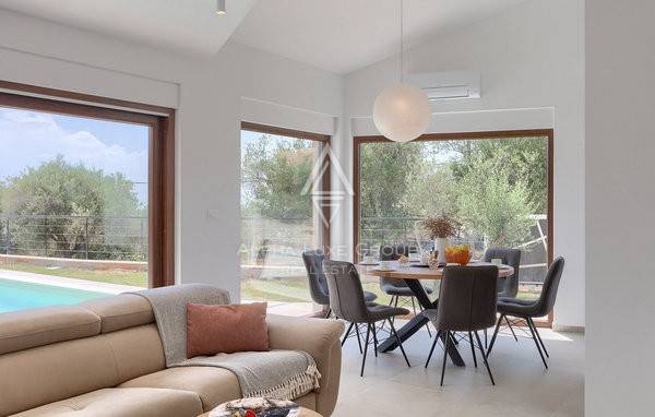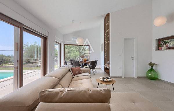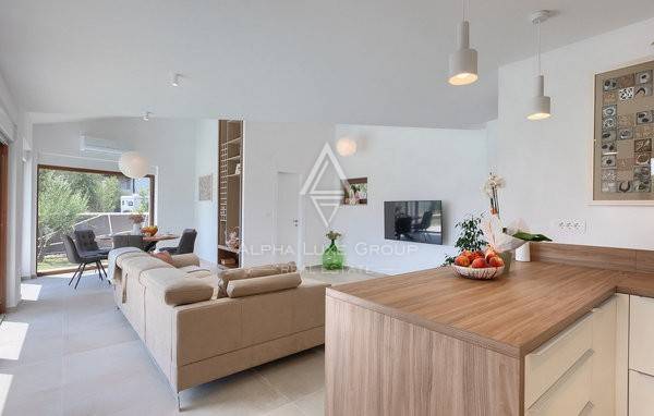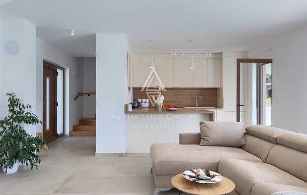 Smještena u mirnom naselju nedaleko od Krnice, ova novoizgrađena vila spaja moderan dizajn s mediteranskim šarmom, stvarajući idealno utočište za sve koji traže udobnost u blizini mora. Interijer se proteže na 100 m² kroz dvije etaže i nudi svijetli otvoreni koncept prizemlja u kojem se dnevni boravak, blagovaonica i potpuno opremljena kuhinja skladno nadopunjuju. Velike klizne staklene stijene ispunjavaju prostor prirodnim svjetlom i povezuju interijer s vanjskom terasom.