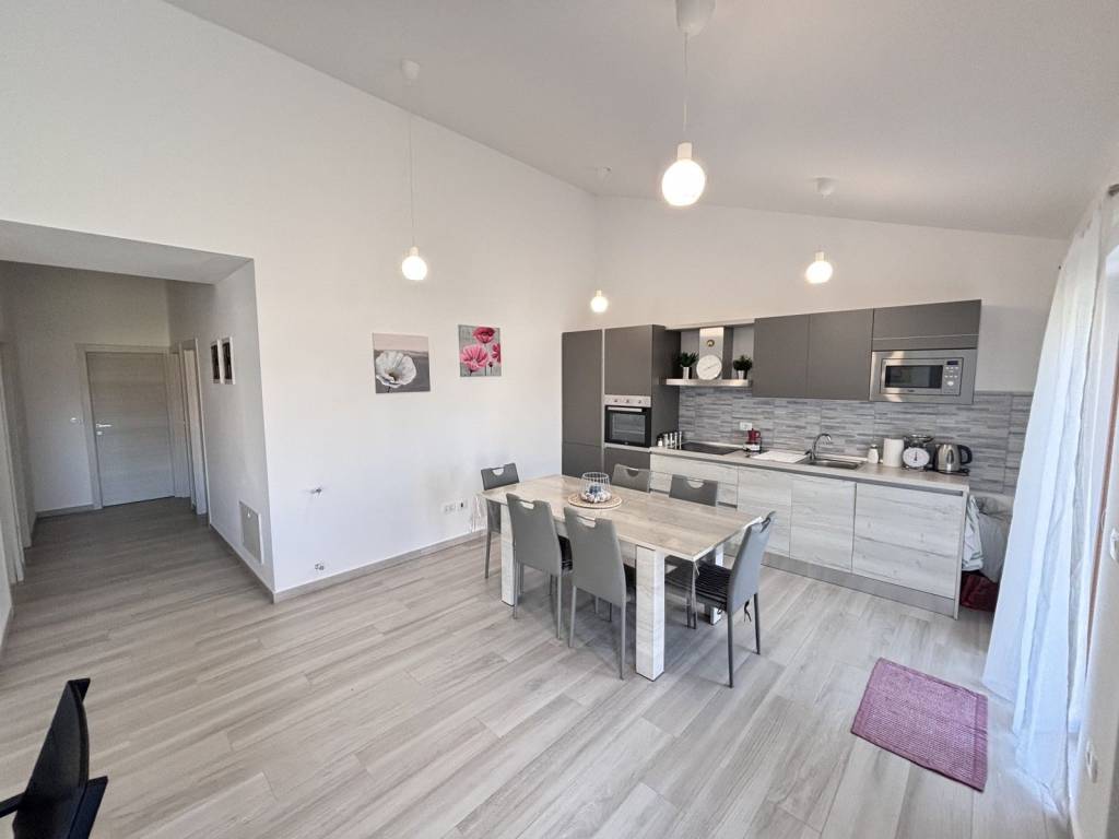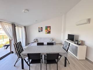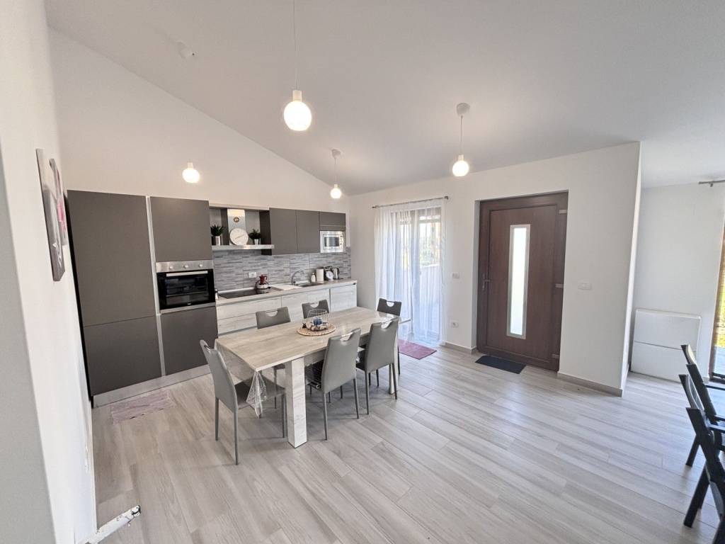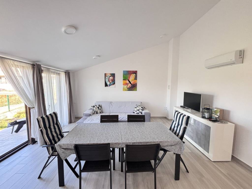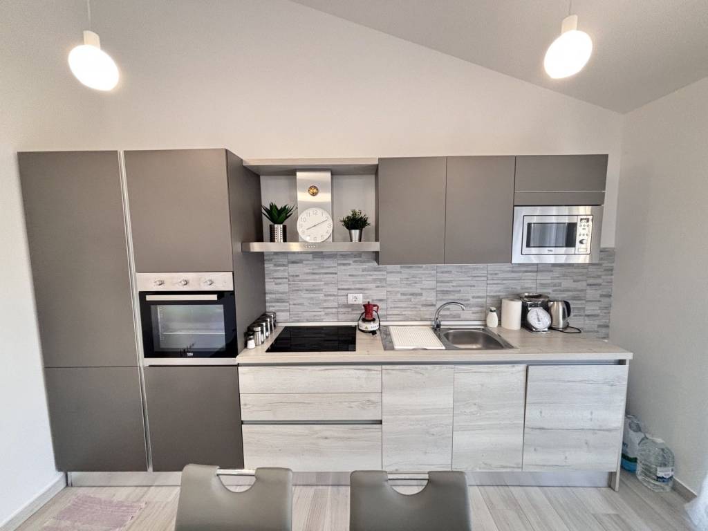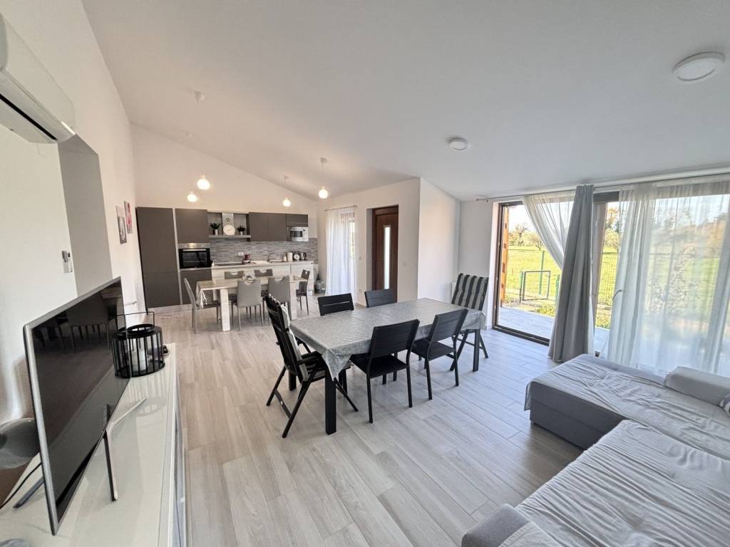 Kuhinja je potpuno opremljena i dolazi s blagovaonskim stolom, a dnevni boravak u open space konceptu osigurava vrhunski komfor.