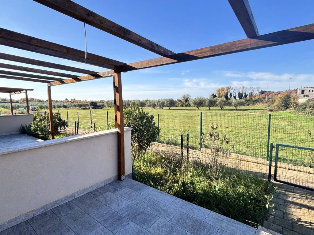 Iz dnevnog boravka, velike staklene stijene pružaju izlaz na terasu s koje se pruža pogled na okružujuću prirodu i zelenilo. Sa ukupno 130m2 dvorišta, kuća nudi razne mogućnosti, od ljetne kuhinje do jacuzzija.